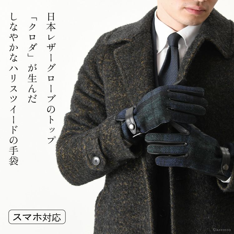 ハリスツイード 手袋 スマホ対応 クロダ メンズ チェック タッチパネル対応 通電 グローブ HarrisTweed クロダ ブランド 日本製【通常ネコポス配送】