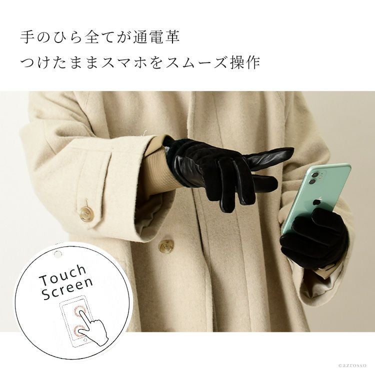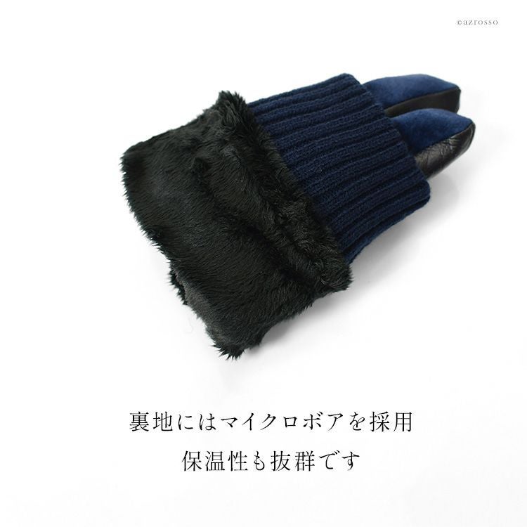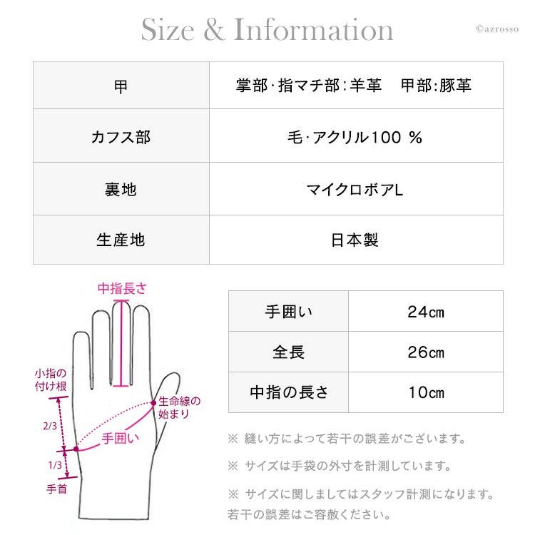 Material:掌部・指マチ部:羊革、甲部:豚革、カフス部:毛・アクリル100%