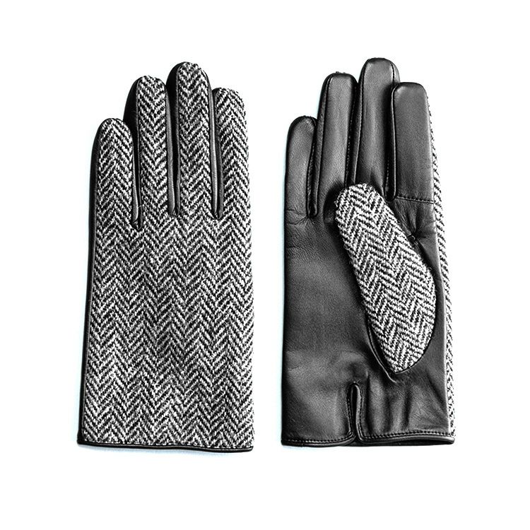 デザイン性と温かさを兼ね備えた、ハリスツイード×羊革の美しいメンズ手袋。