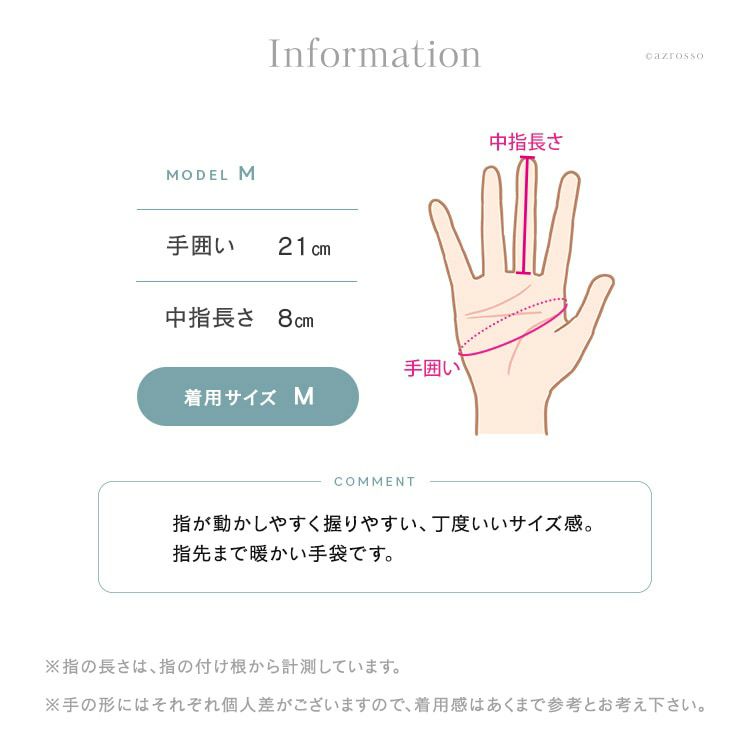 手を入れた時のフィット感は抜群で、ウール100%の優しいニットが、手を温かく包み込みます。