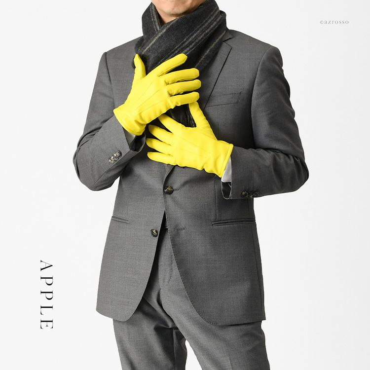 無難にブラックやネイビー、ブラウン系を選びがちな男性に、カラーグローブを提案します。
