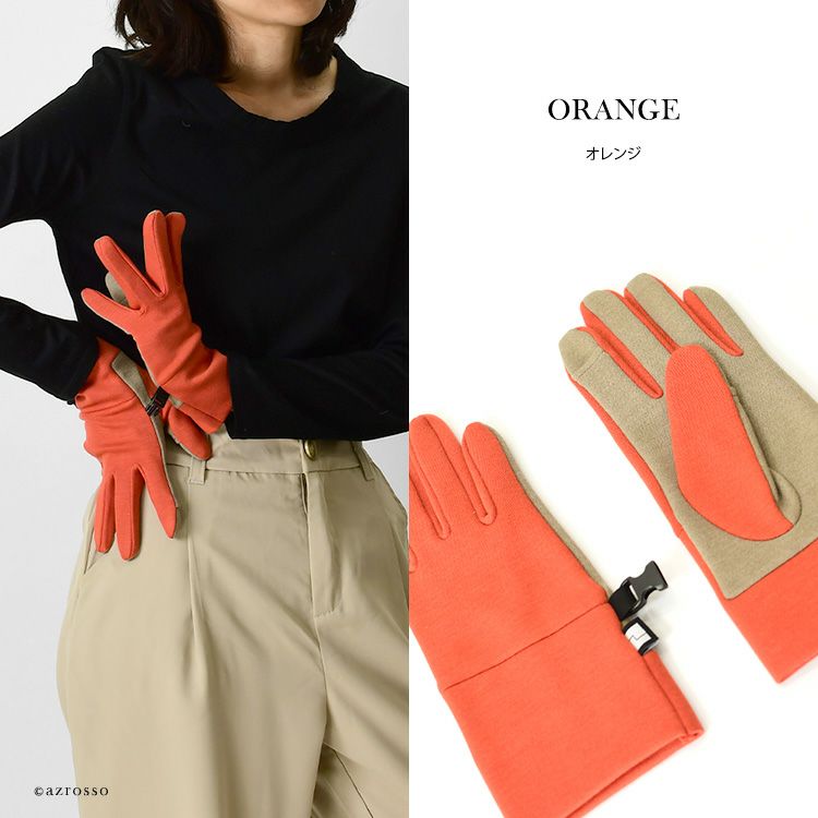 ▼特徴:スマホ対応 指無し バイカラー ジャージ素材 バックル付き
