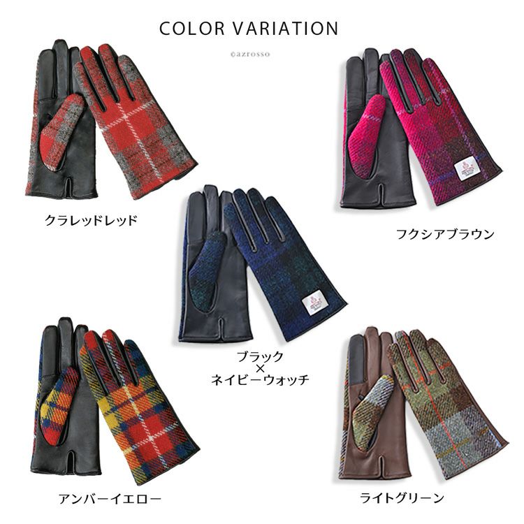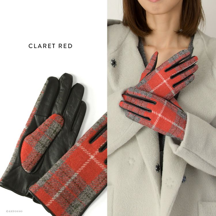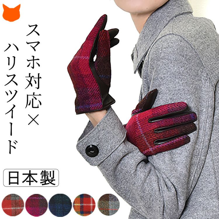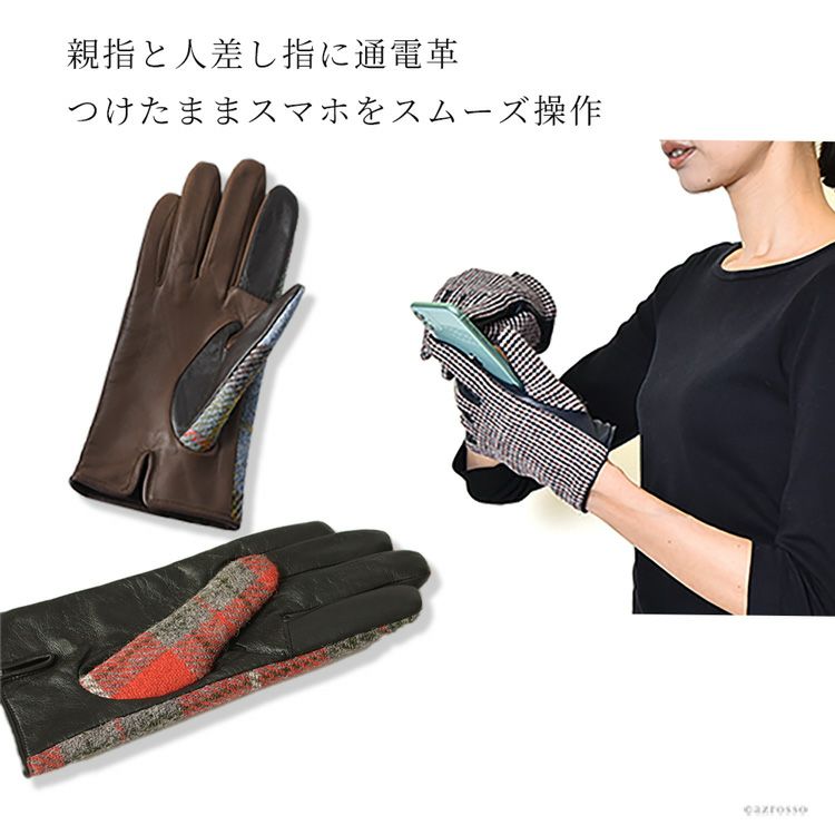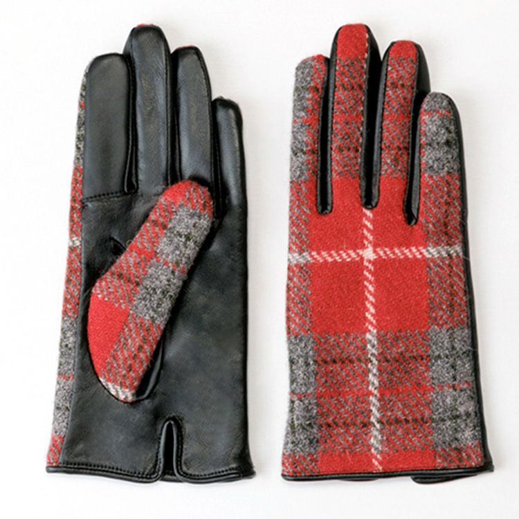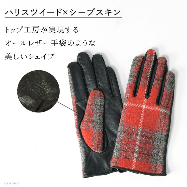 スマホ対応 ハリスツイード×ラムレザー 手袋 チェック柄 レディース レザーグローブ 日本製 手袋 イタリアで大賞受賞の日本ブランド「クロダ」抗菌グローブ【通常ネコポス配送】