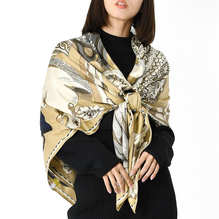 大判 ストール シルク混 ルーブル美術館コラボ 高級 スカーフ おしゃれ レディース 正方形 130×130 INOUI EDITIONS イヌイエディションズ ブランド