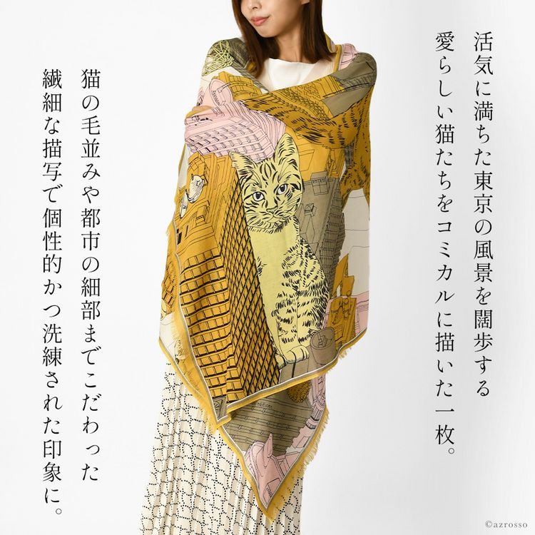 INOUI EDITIONS TOKYO イヌイエディションズ ストール 大判 70×190 ウール100% アニマル 猫