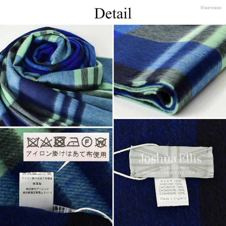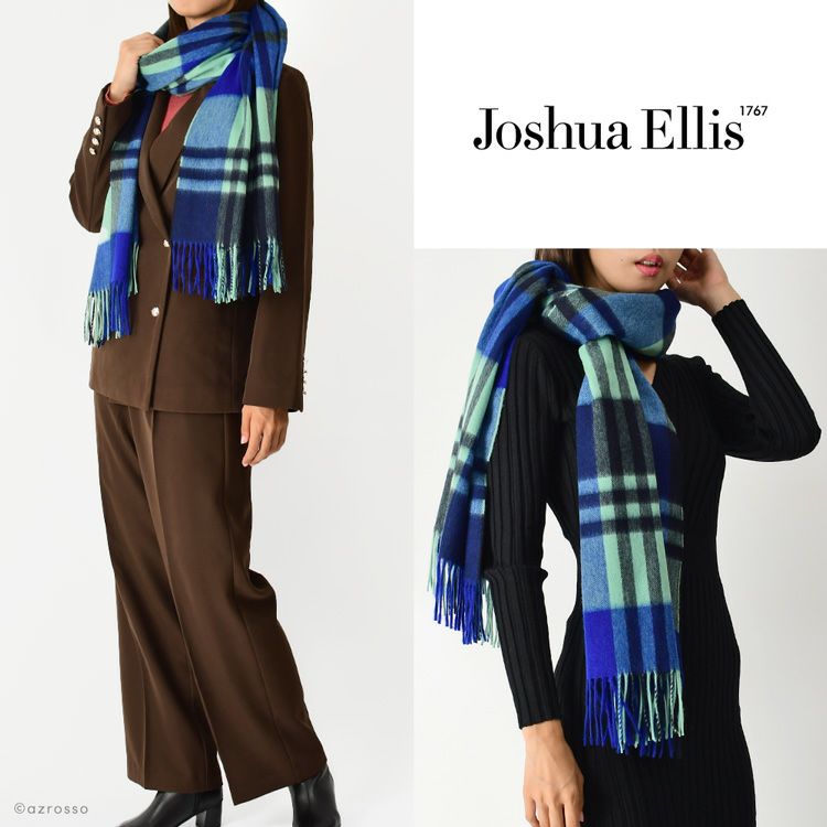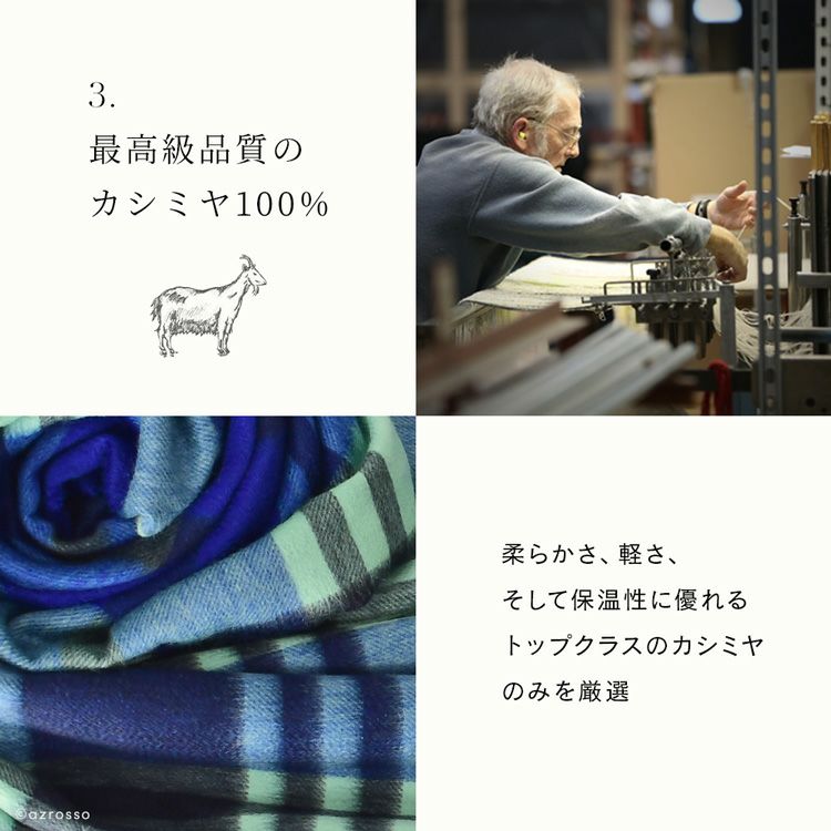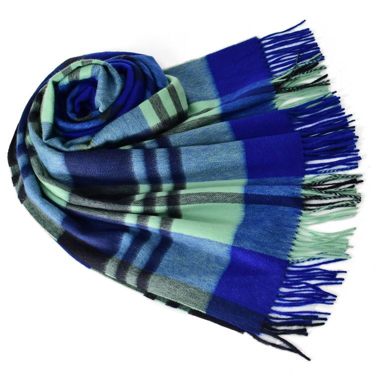 カシミヤ ストール 大判 厚手 タータンチェック カシミヤ100% ロングマフラー フリンジ グリーン コバルトブルー レディース ブランド