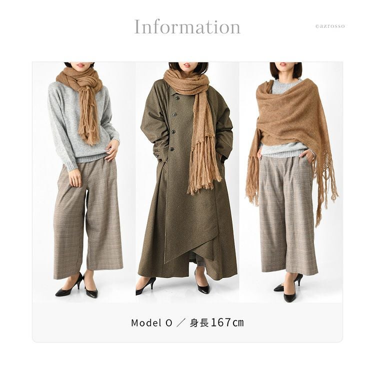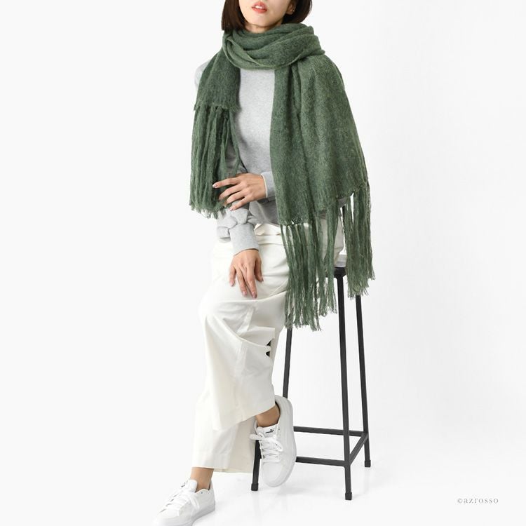 イタリア製 ベビー アルパカ ストール マフラー 大判 ロング フリンジ 敏感肌用 チクチクしない 素材 肌に優しい 肌触りの良い ブラウン グリーン
