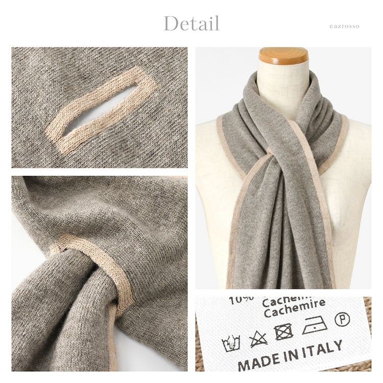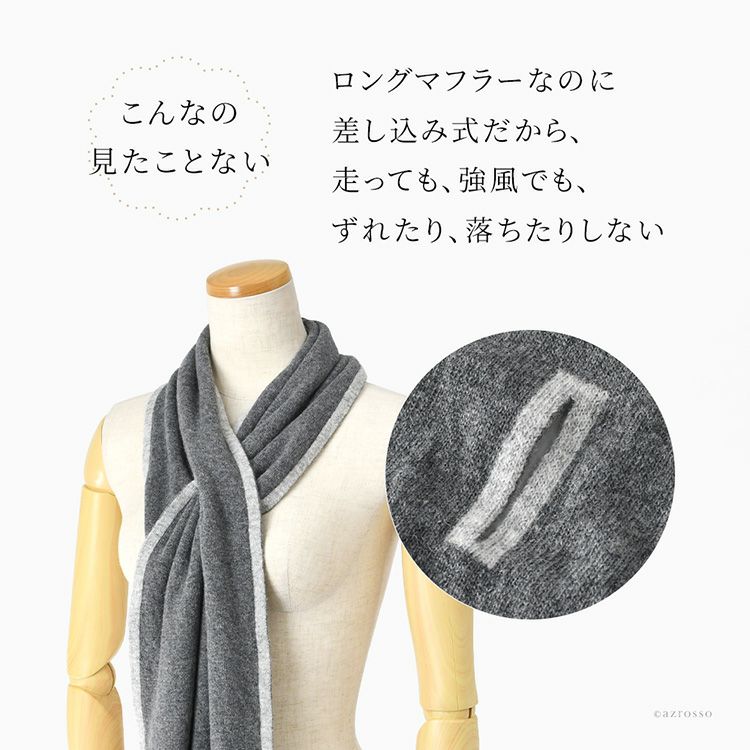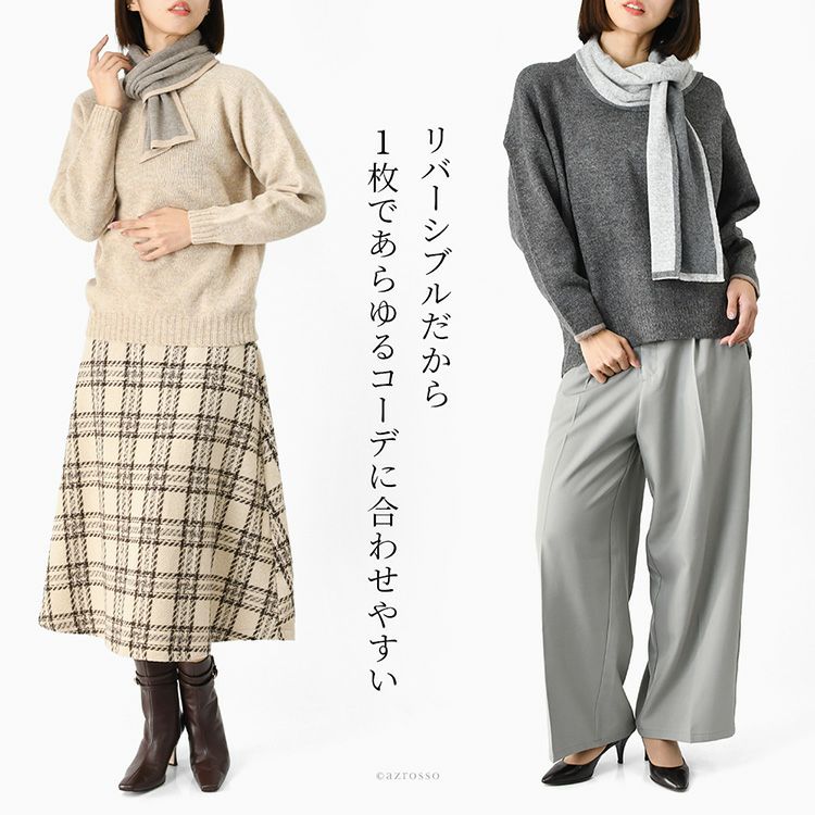 イタリア製 カシミヤ混 リバーシブル マフラー カシミヤ マフラー ロング 差し込み ウール レディース チクチクしない 肌に優しい 薄手 グレー ベージュ