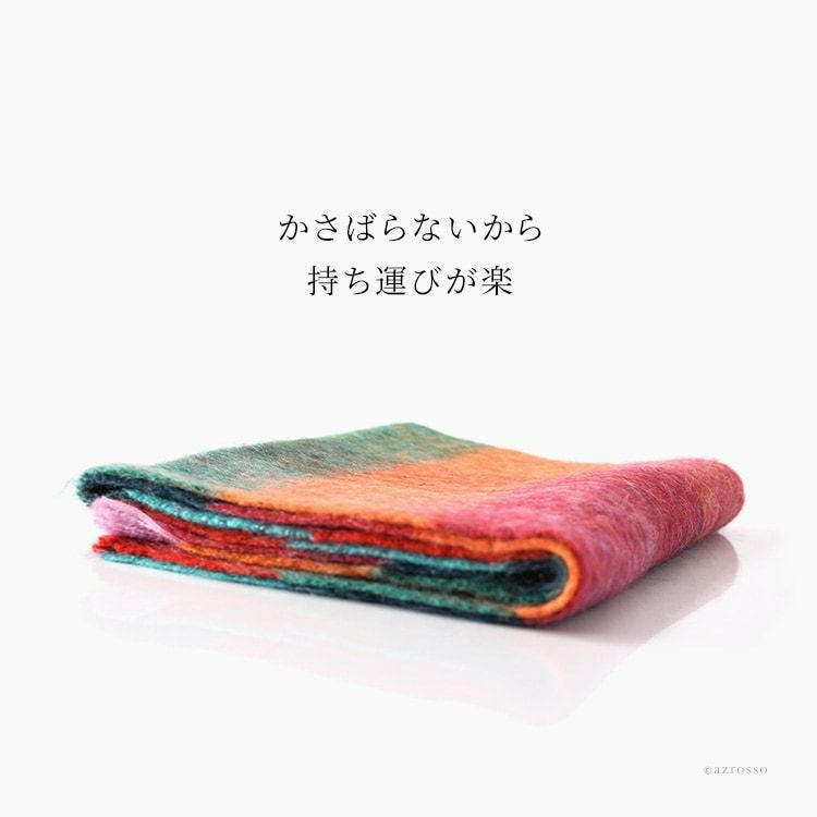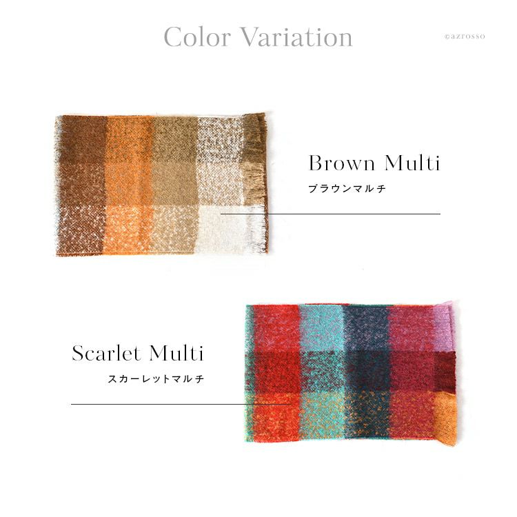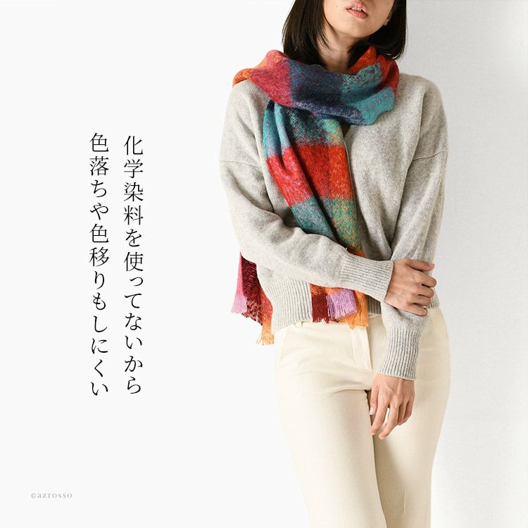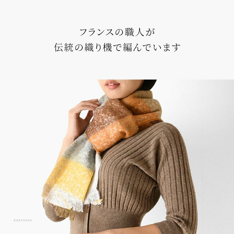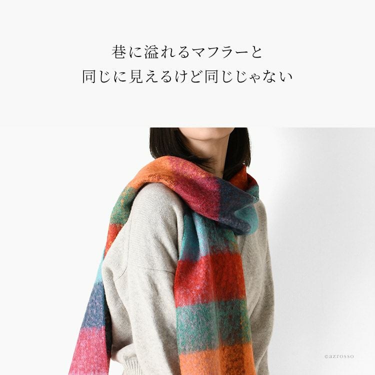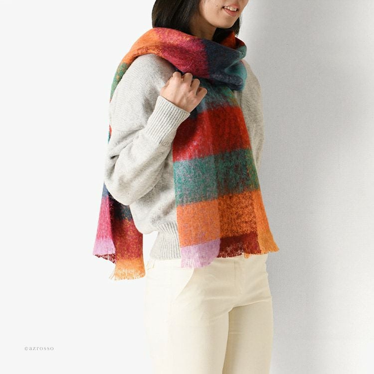 チェック マフラー 大判 ストール フランス製 ロングマフラー マルチカラー ブロックチェック 赤 オレンジ フランス ブランド レディース