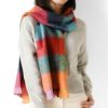 ふんわり、ちくちくしない上質モヘア使用。職人が伝統の織り機で編み上げたフランスブランドPIERRE QUIOC(ピエールキオック)のおしゃれなブロックチェックのロングマフラー チェック マフラー 大判 ストール フランス製 ロングマフラー マルチカラー ブロックチェック 赤 オレンジ フランス ブランド レディース