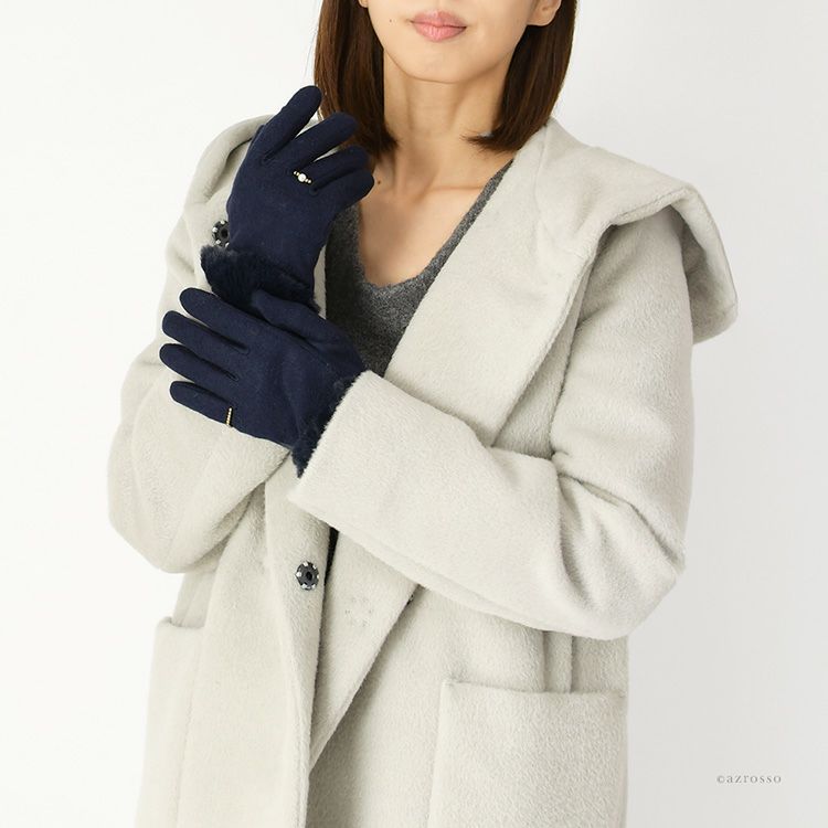 手元華やかなクロダのパールリング風ジャージ手袋。親指と人差し指にスリット入りでスマートフォン操作も楽々。裏地に滑らかなマイクロボアを使用した暖かい使いやすい手袋はクリスマスプレゼントにもおすすめ 指が出せる 手袋 スマホ対応 レディース 暖かい ファー付き おしゃれ パール リング かわいい グローブ ブランド クロダ 【通常ネコポス配送】