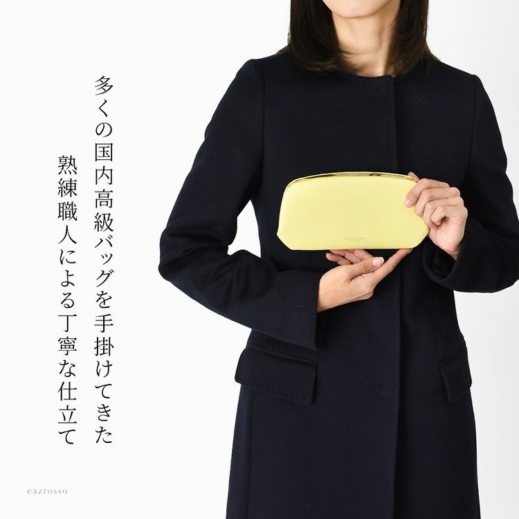 ゴールドの金具とクラッチバッグ型がエレガントなKIYOKAWAの高級レディース長財布。厳選された国産のハイクラス牛革を使用したこだわりの日本製本革財布 日本製 KIYOKAWA 本革 長財布 レディース がま口 高級 クラッチ財布 札入れ 小銭入れ バッグブランドの清川商店(キヨカワ)