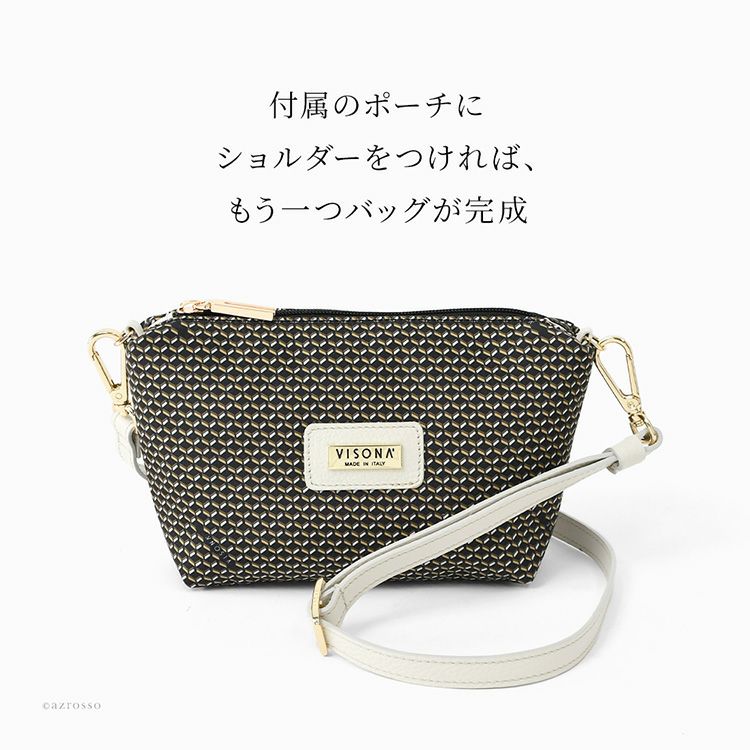 イタリアブランド ヴィソナ(VISONA)の軽量ミニトートバッグ。高級感あふれる生地に機能性を兼ね備えた逸品。広めマチで幅広アイテムも楽に収納。ポーチ付きでショルダーバッグにもなるので2個持ちバッグとしても。 イタリア製 ミニトートバッグ 2way ブランド レディース マチ広め 500g以下 旅行 ナイロンバッグ ミニポーチ付きトートバッグ ハイブランド
