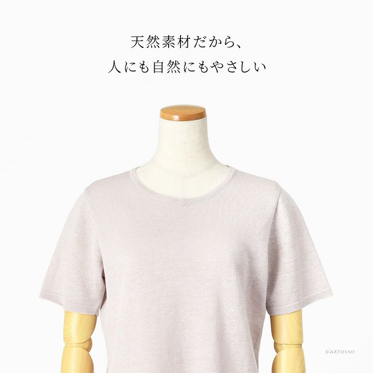 安価なリネンとは違う上品な艶としなやかさ。ごわつきなし・日本製・洗えるウォッシャブルリネン 麻100%の快適カットソー。母の日ギフトや誕生日プレゼントにもおすすめ リネンカットソー 日本製 半袖 洗えるトップス レディース リネン100% ビアセリカ ウォッシャブルリネン