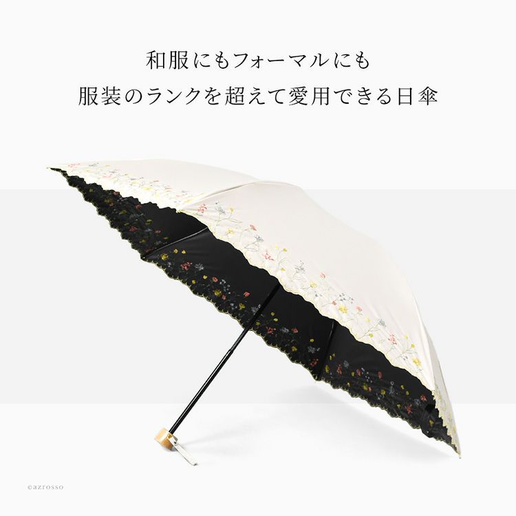 軽くて小さい簡単にたためる折りたたみ日傘 ミニサイズで持ち運び便利な完全遮光日傘。おしゃれな花刺繍「ガーデンフラワー」裏地が黒・UVカット・UPF50で紫外線をしっかりガード。晴雨兼用で1年中使えます。 日傘 折りたたみ 簡単開閉 完全遮光 裏地黒 刺繍 おしゃれ 花柄 軽量 晴雨兼用 刺繍日傘 遮光100 UVカット100 遮熱 可愛い 母の日 プレゼント ギフト