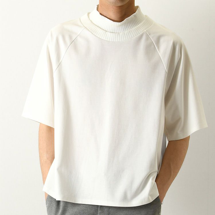 簡単に上品おしゃれなスタイルに仕上がる。極上素材スーピマコットン(高級綿)で日本の職人が仕立てた、魔法のTシャツカットソー。お値段以上の価値と喜びをあなたにお届けします。 メンズ カットソーTシャツ 5分袖 日本製 モックネック オーバーシルエット スーピマコットン レイヤード風カットソー 春 夏 おしゃれ NaNo Art ナノアット