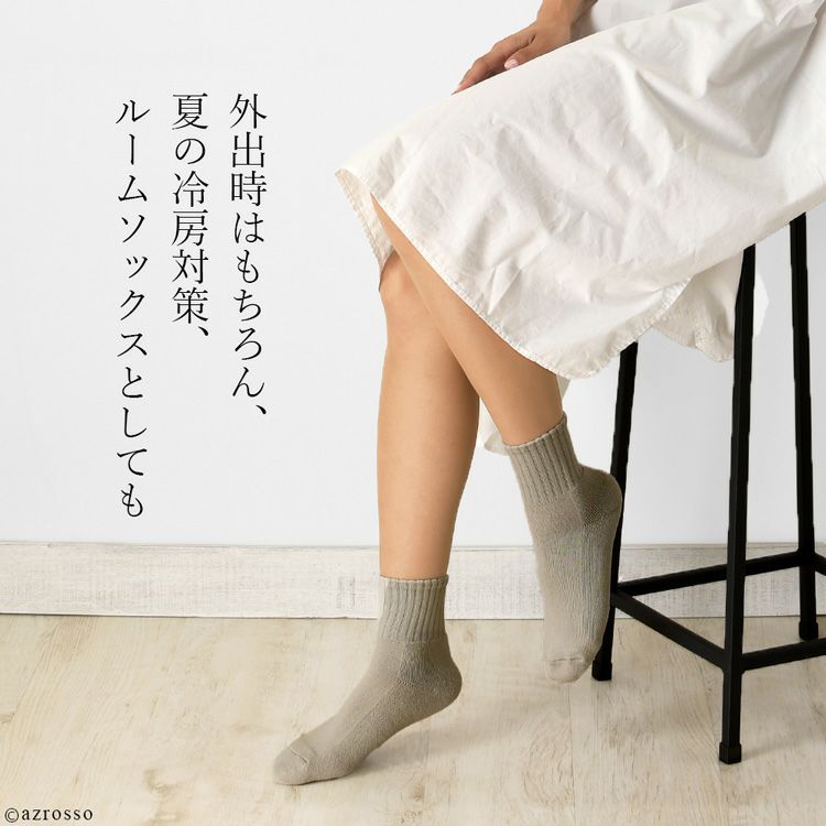 外側は丈夫なコットン、内側はたっぷりとシルクで編んだ、柔らかく履き心地よく足を包み込んでくれる日本製靴下。トップブランドにシルクを提供する老舗工房「HASEGAWA」のソックスをプレゼントにもおすすめ スパンシルク コットン ソックス 絹 靴下 綿 春夏 通年 クルーソックス 足 冷え対策 冷房対策 日本製 ブランド 長谷川商店 温活 ベージュ ミントブルー ネイビー【通常ネコポス配送】