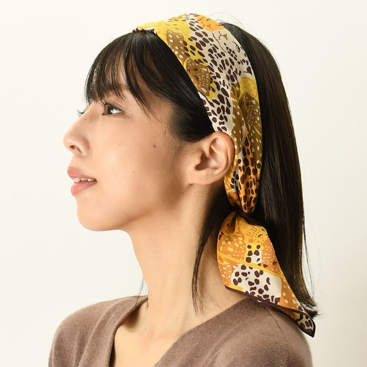 フランスブランドINOUI EDITIONSの、ヒョウたちがテトリスのようにびっしりと敷き詰められた愛らしいスカーフ"TETRIS "。気軽に使える小さめサイズで、なめらかなシルク×コットンが季節問わずに使えて肌触りも抜群 INOUI EDITIONS TETRIS イヌイエディションズ スカーフ シルク×コットン 正方形 65×65 アニマル柄 レオパード ヒョウ柄 イエロー イヌイトゥーシュ