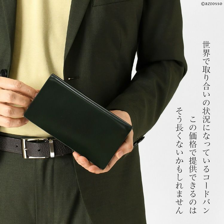 美しいコードバンの長財布はアトリエヒロの新作、ミニマリスト仕様に無駄をそぎ落とした薄くて軽い二つ折りの札入れ コードバン 長財布 メンズ 小銭入れなし 薄い 札入れ 高級 本革 緑 紳士 ブラック ネイビー バーガンディ