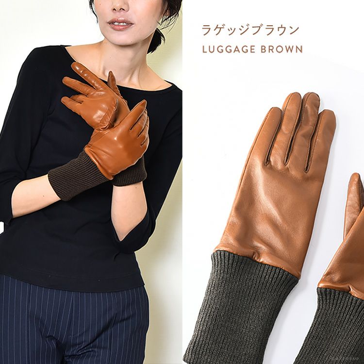 独自の縫製技術で極上の着け心地。長めのニットカフスが手首から スマホ対応 羊革 レディース レザーグローブ イタリアレザー×カシミヤ 日本製 手袋 イタリアで大賞受賞の日本ブランド「クロダ」のロングセラーグローブ