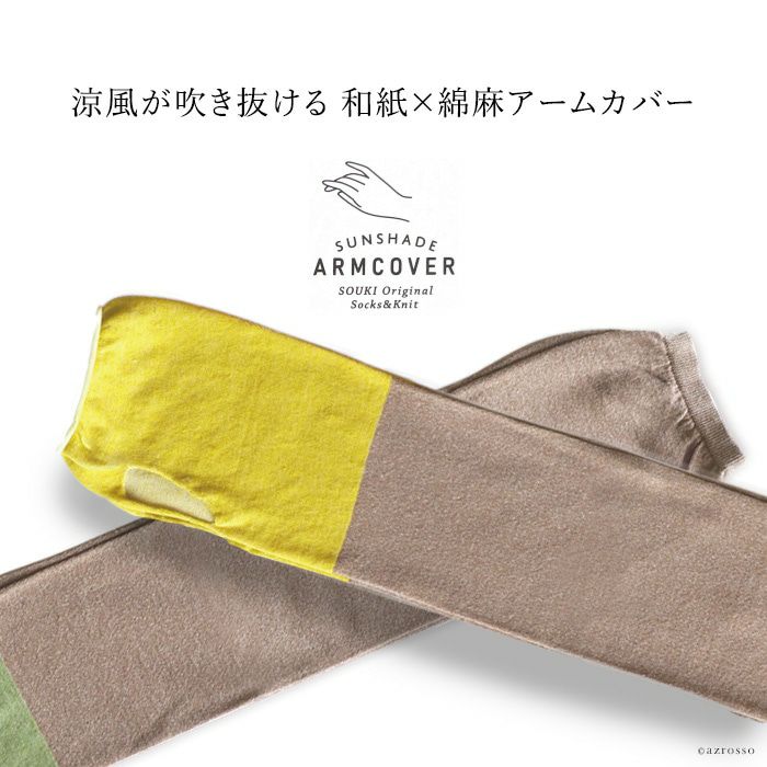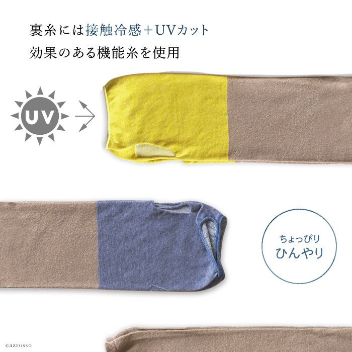涼しい アームカバー uvカット ロング アームウォーマー 冷感 レディース 日本製 ブランド 和紙 バイカラー【通常ネコポス配送】