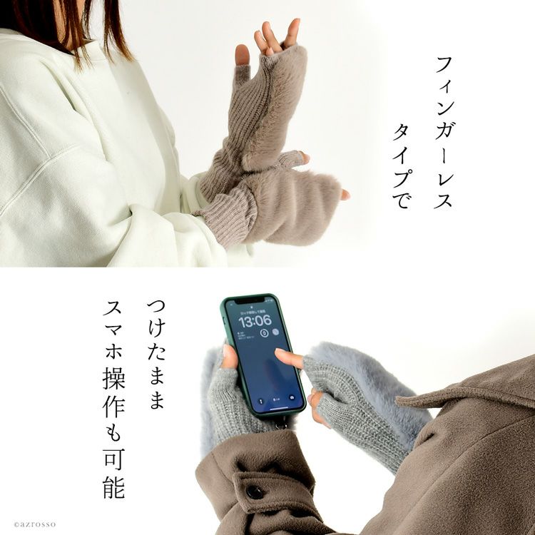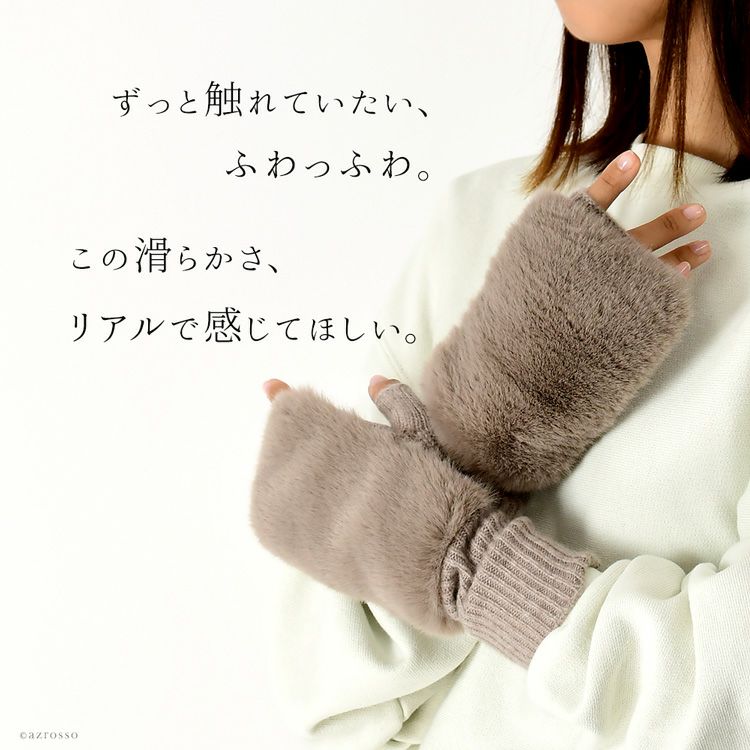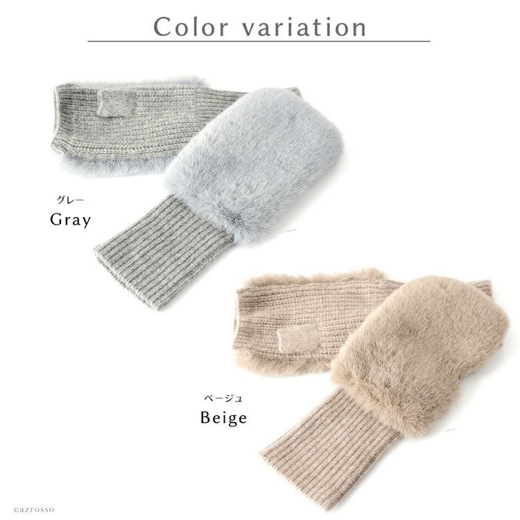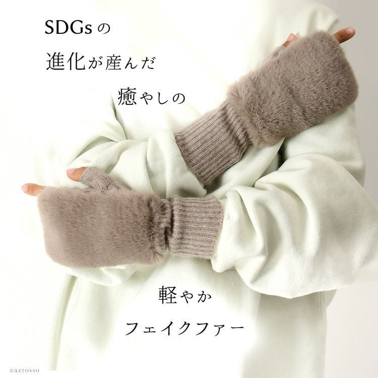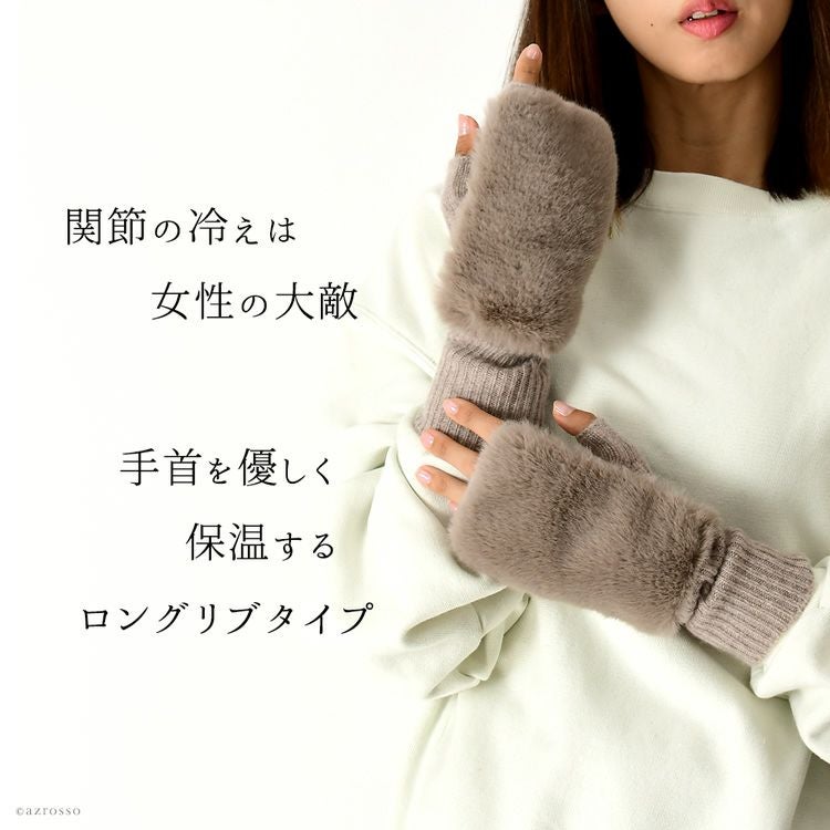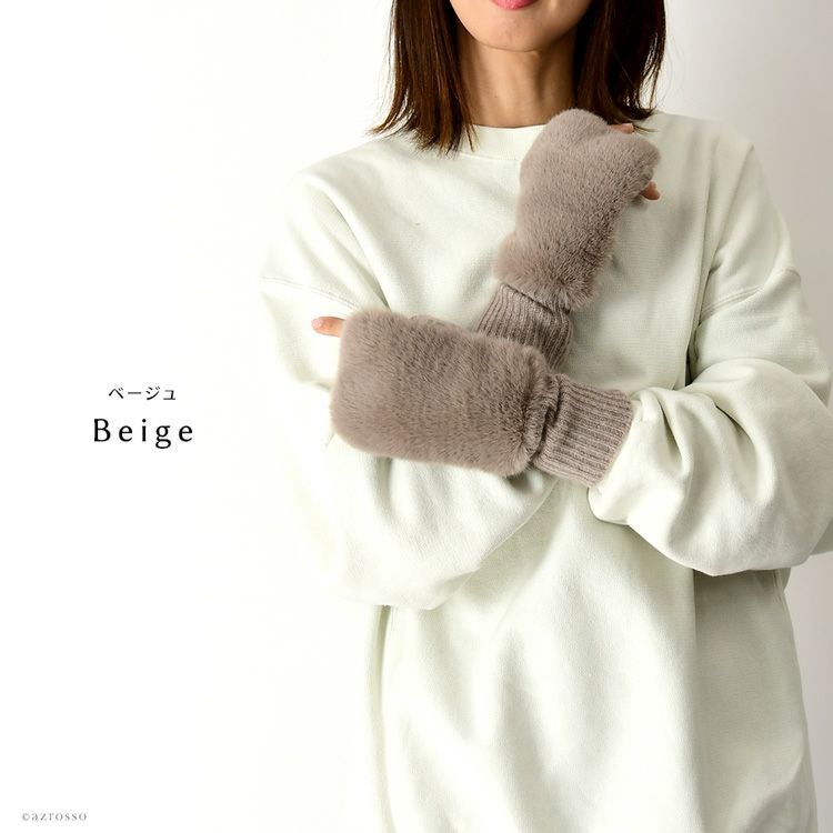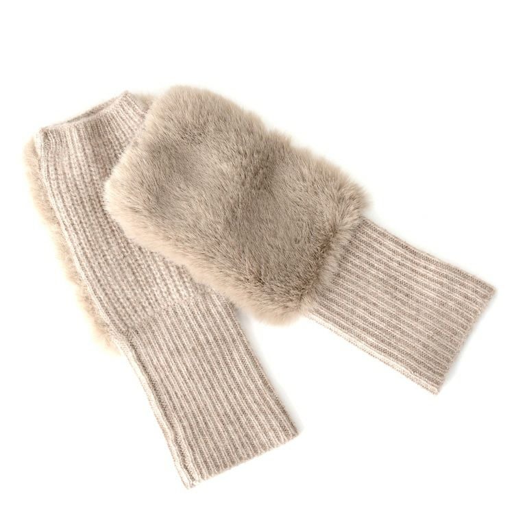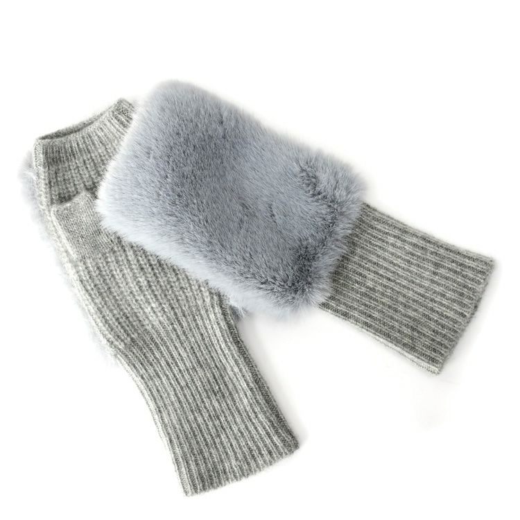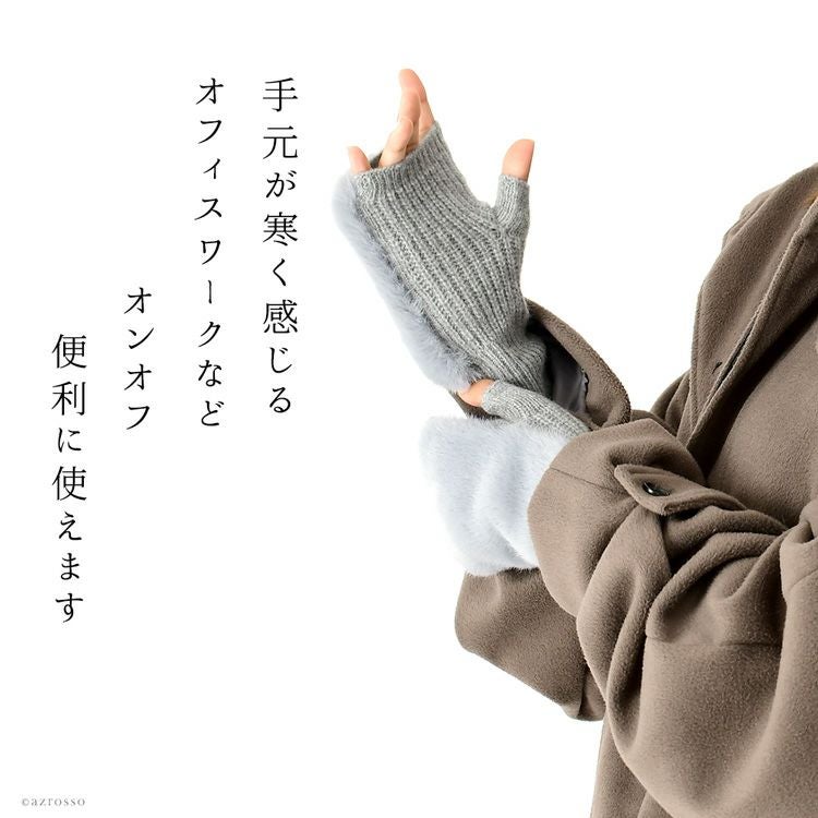 カシミヤ ニット ミテーヌ手袋 ファー付き 指なし スマホ対応 もこもこ 暖かい 指先が出るフィンガーレスグローブ レディース