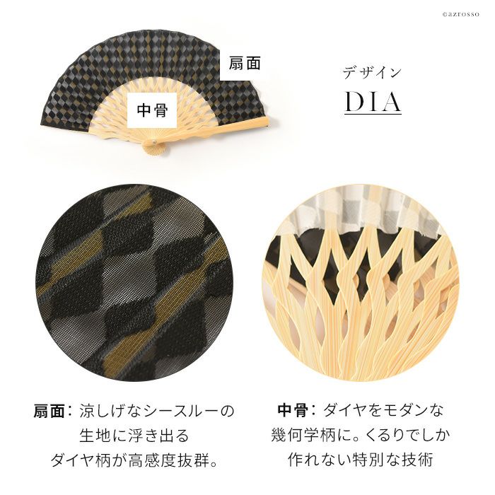 くるりの小さめ扇子【DIA】おしゃれでかわいいコンパクトなミニ扇子 ダイヤ柄【通常ネコポス配送】
