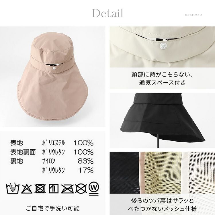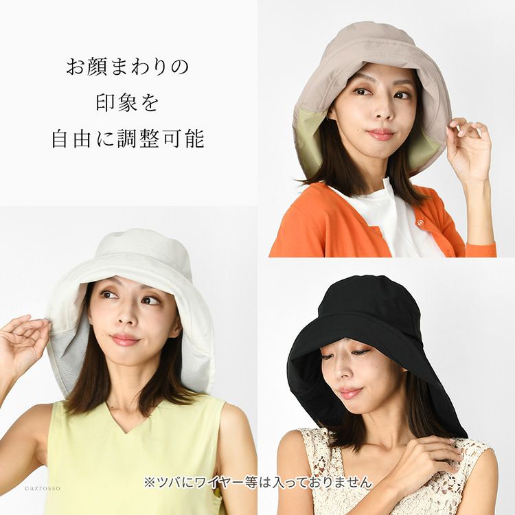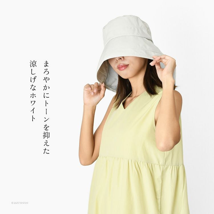 接触冷感 UVカット帽子 レディース 日よけ 首の後ろ 日焼け防止 つば広 たためる 洗える 涼しい 撥水 一級遮光 保冷剤ポケット付き