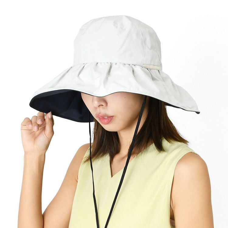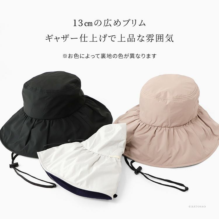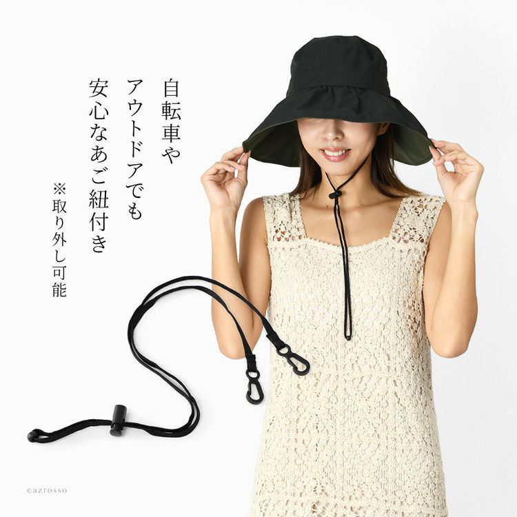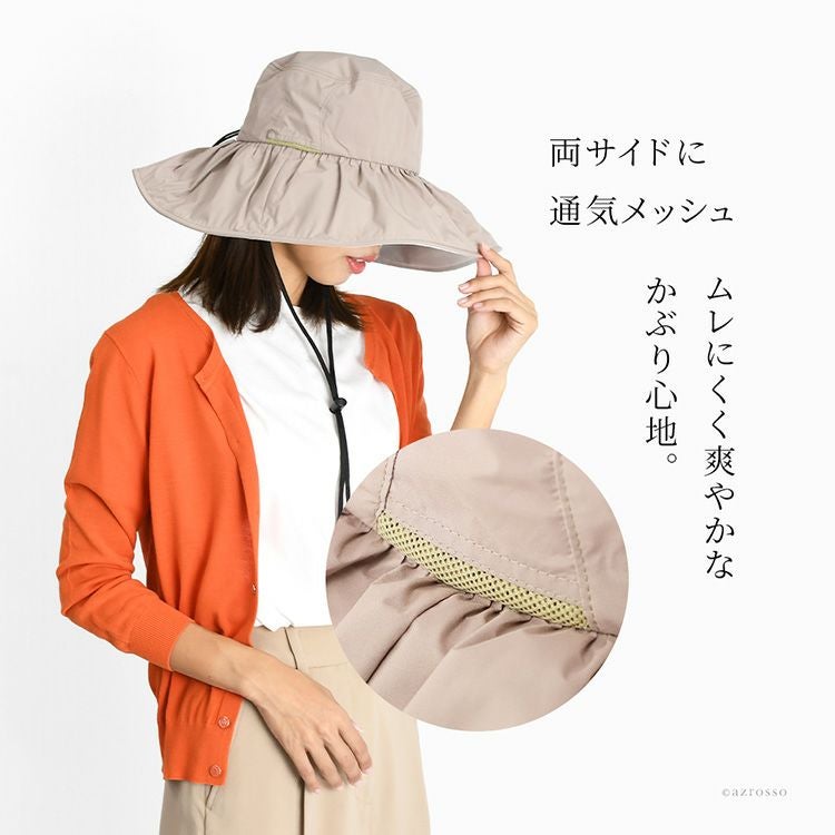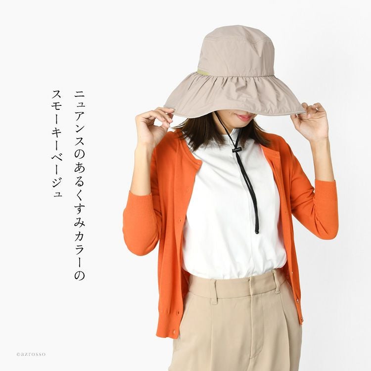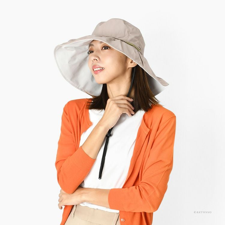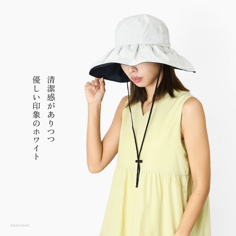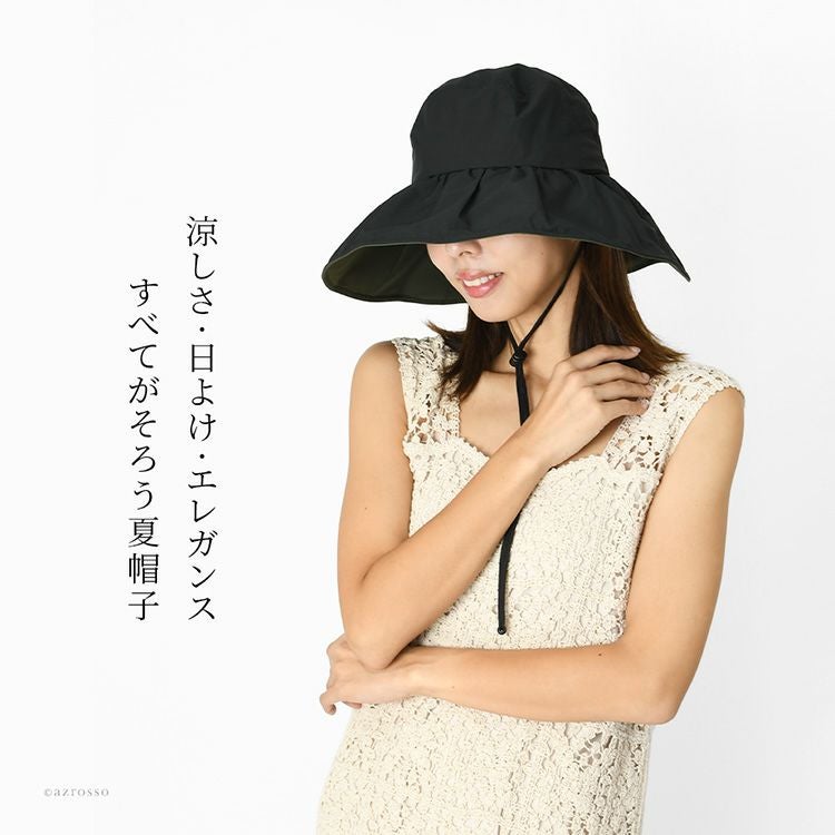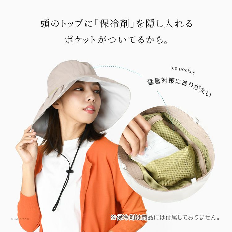 接触冷感 UVカット帽子 レディース つば広13cm 撥水 あご紐付き 折りたたみ 一級遮光 保冷剤ポケット付き 涼しい夏帽子 ワイヤー入り