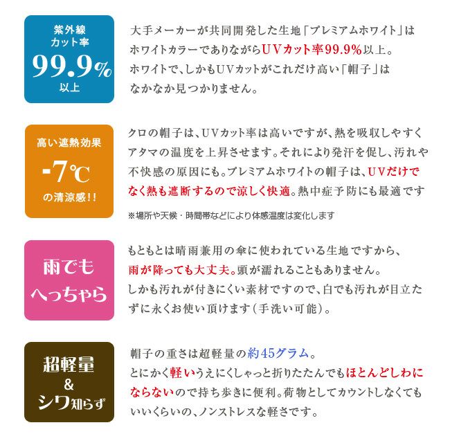 UVカット99%以上、完全防水、超軽量のプレミアムホワイトの生地が、素敵な帽子になりました。 驚きの殺菌力と抗菌力をもつ帽子。UVION ユビオン プレミアムホワイト リボンハット 帽子 濡れてもOK 涼しくてUVも99%以上カット