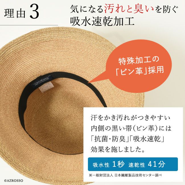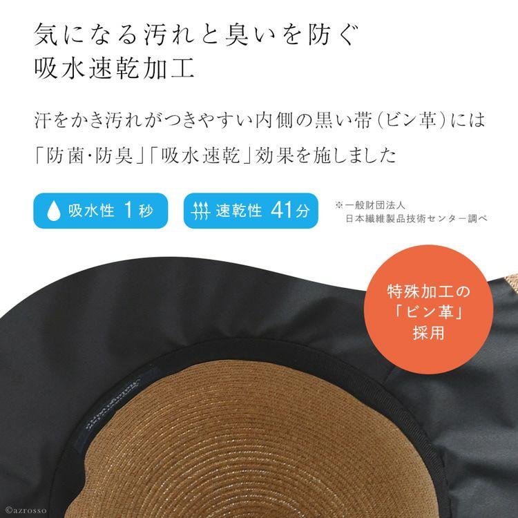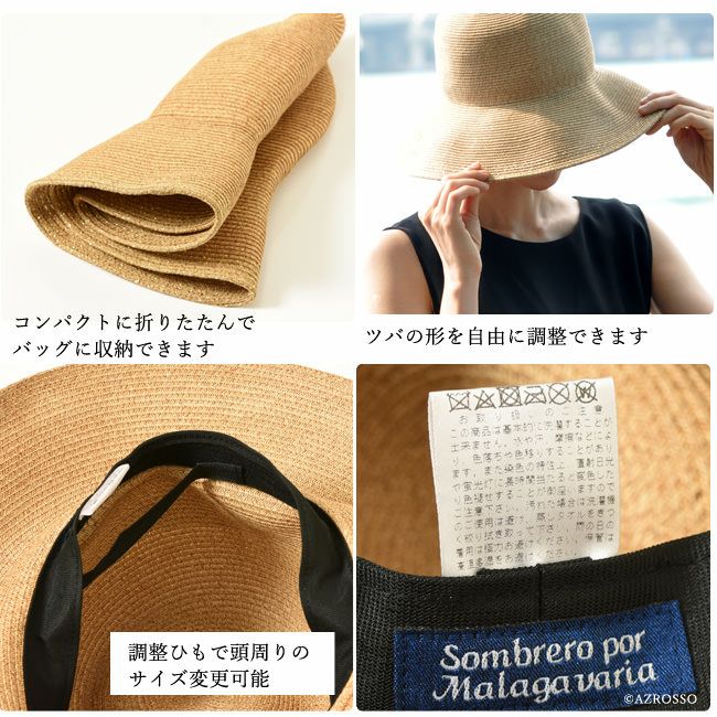 外線遮蔽率97%以上!UPF50+ 完全遮光のつば裏、抗菌 防臭加工、早く乾く。折り畳み出来るから旅行にも重宝。サイズ調整可能です。 ブリム10.5cm つば広 キャペリンハット カプリーヌハット 女優帽 麦わら帽子 日本製 マラガバリア 頭周り58cm