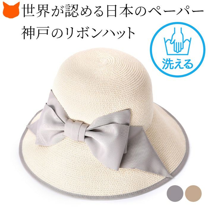 ブリム10cm 手洗い(水洗い)できる程耐水性に優れた天然のかみのいと(紙の糸)で仕上げる上質リボンハット。抗菌 防臭加工、早く乾く。折り畳み出来るから旅行にも重宝。サイズ調整可能 洗える ブレードハット リボン 日本製 麦わら帽子 ポケッタブル ブリム10cm つば広 折りたためる ペーパーハット マラガバリア 頭周り58cm