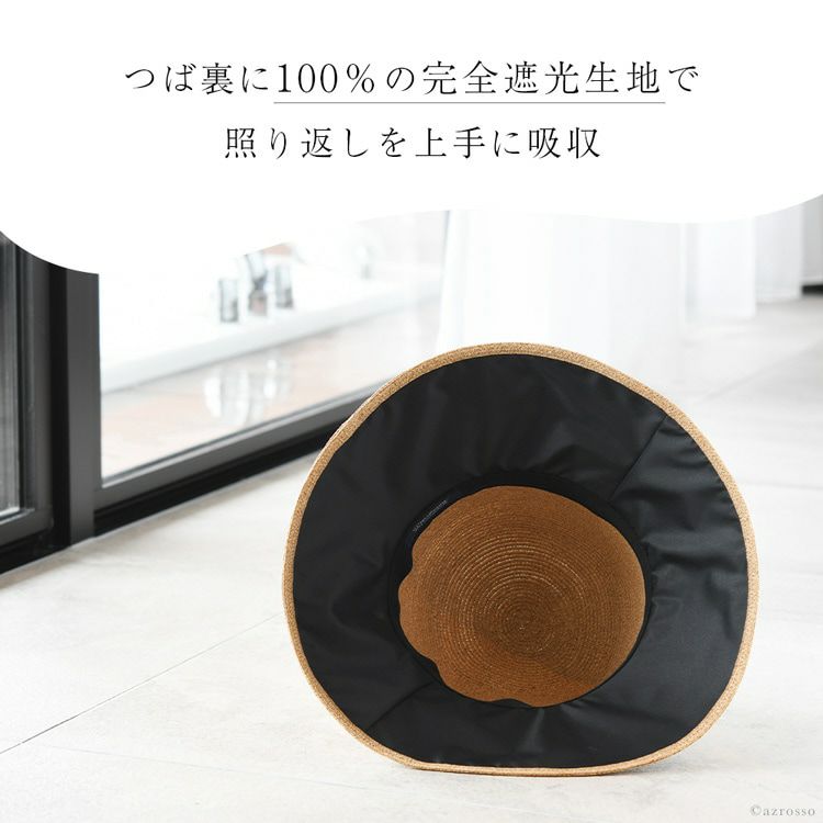 紫外線遮蔽率97%以上!UPF50+ 完全遮光のつば裏、抗菌 防臭加工、早く乾く。折り畳み出来るから旅行にも重宝。サイズ調整可能です。 完全遮光の女優帽 ブリム12cm つば広 キャペリンハット 日本製 リボン ブラック カプリーヌハット 麦わら帽子 マラガバリア