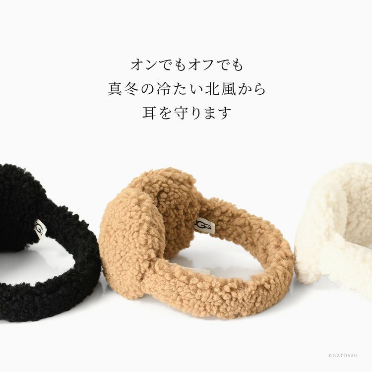 真冬の冷たい風や空気から耳を守るもこもこなUGG Sherpa Earmuff(アグ シェルパ イヤーマフ)。保温性に優れ、非常に柔らかなシェルパ生地を使用した耳あてです 耳あて レディース イヤーマフ イヤーマフラー ボア フェイク ファー 暖かい 防寒 秋冬 耳カバー ふわふわ おしゃれ ブラック アイボリー ベージュ 白 茶色