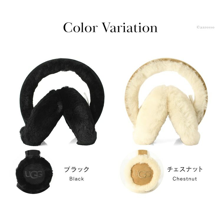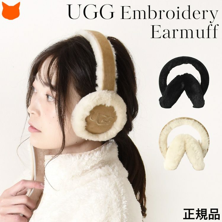 真冬の冷たい風や空気から耳を守るもこもこなUGG Embroidery Earmuff(アグ エンブロイダリー イヤーマフ)。保温・保温性に優れた極上シープスキンを使用した耳あてです 耳あて シープスキン ファー イヤーマフ Sheepskin Embroidery Earmuff 20955 イヤーマフラー ボア 暖かい 防寒 耳カバー ふわふわ かわいい おしゃれ 黒 ブラック チェスナット レディース