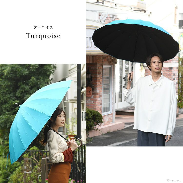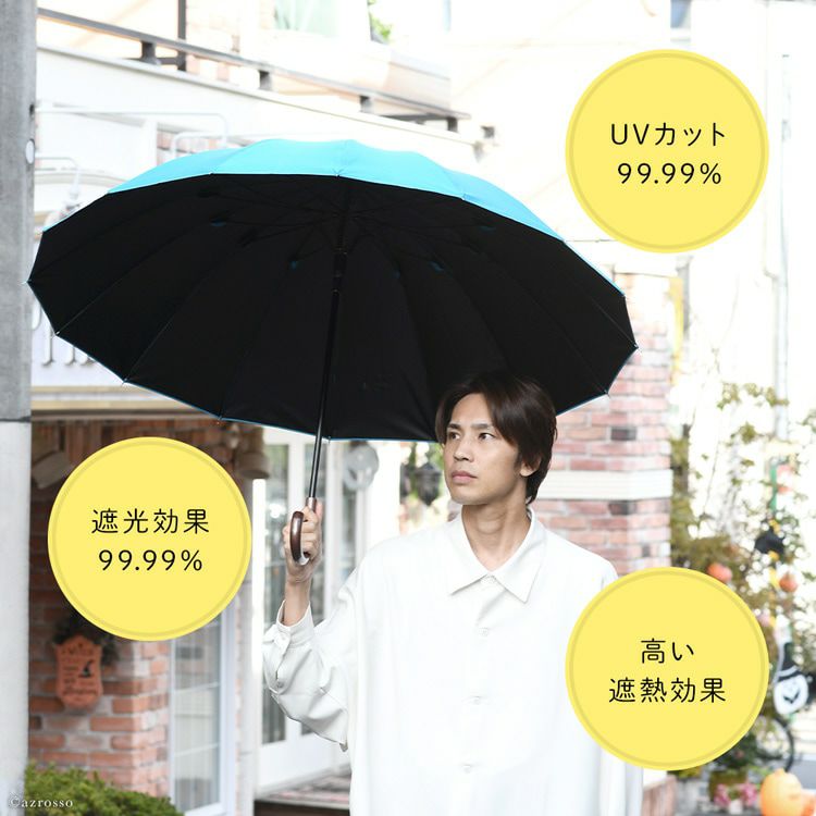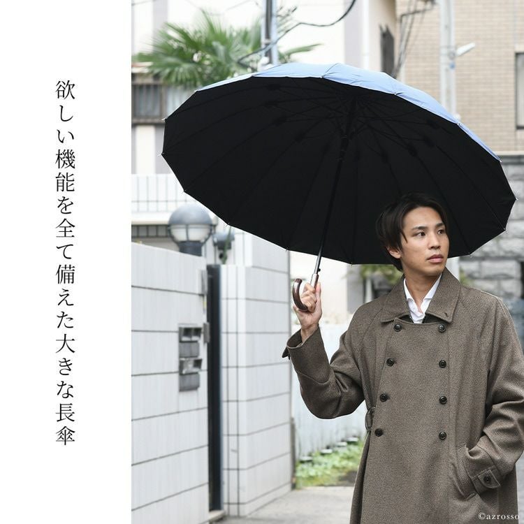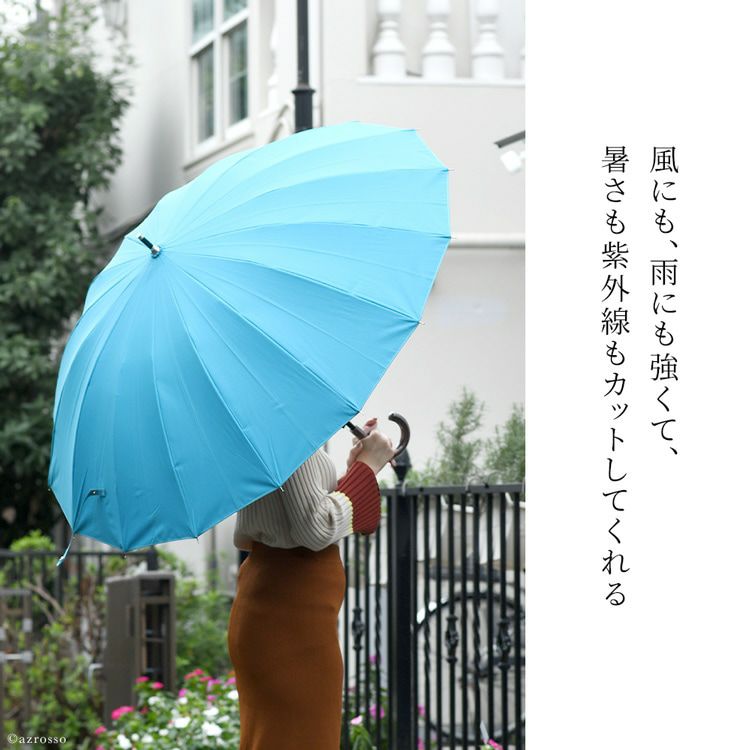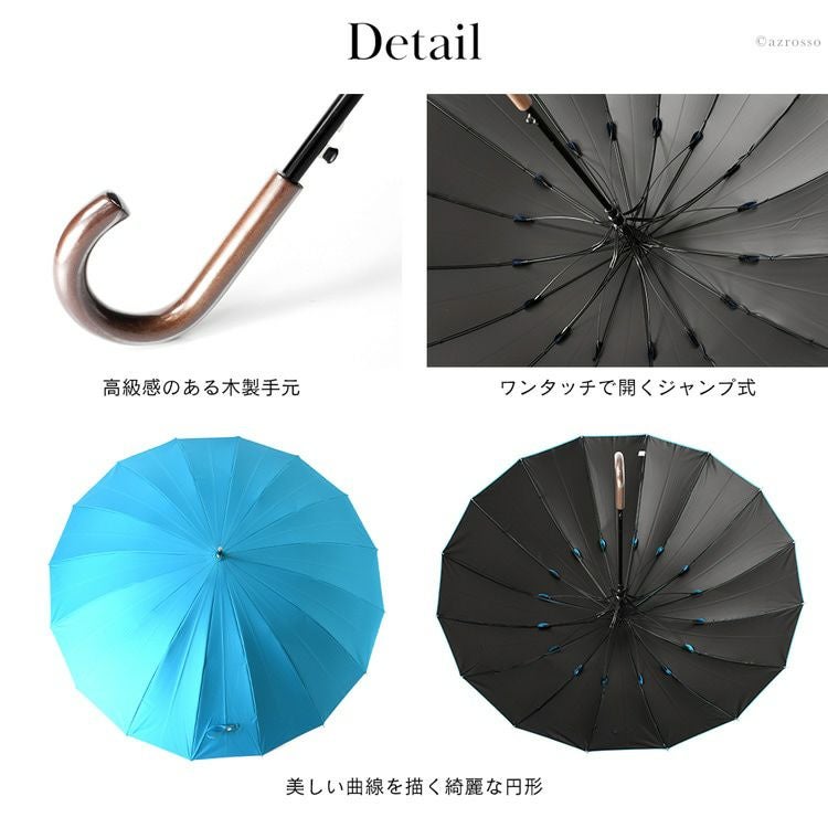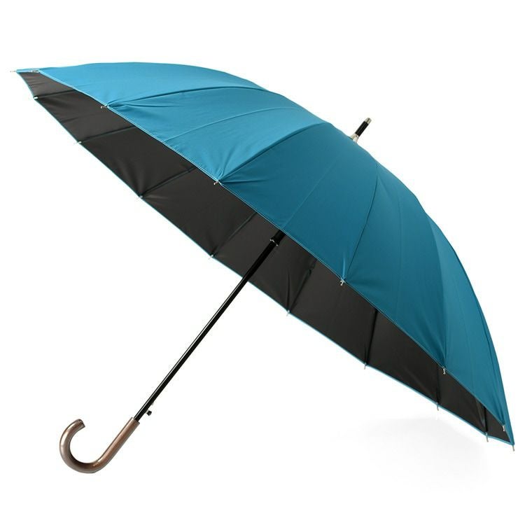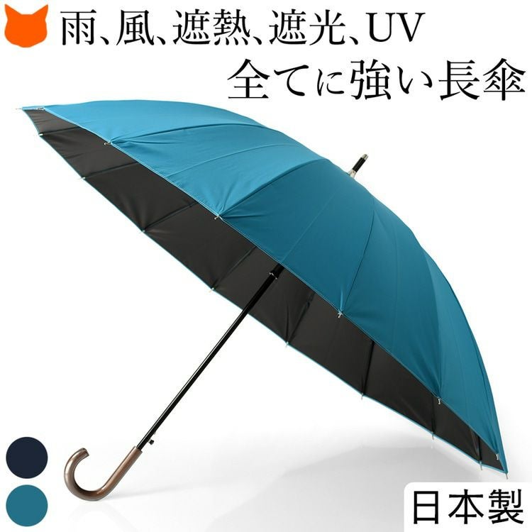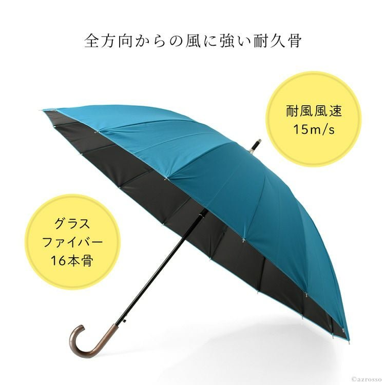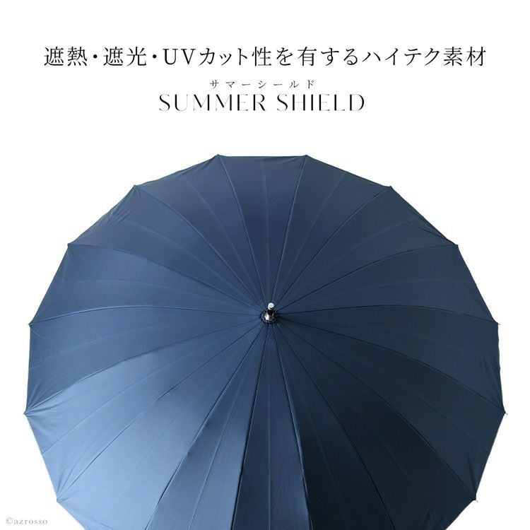 16本骨 日本製 長傘 大判 雨傘 晴雨兼用 傘 台風 遮光 UVカット ほぼ100% 遮熱 耐風 サマーシールド 紺 ネイビー ターコイズ ブルー 水色 おしゃれ グラスファイバー 丈夫 大きい 日傘 婦人傘 紳士傘 65サイズ レディース メンズ 男女兼用