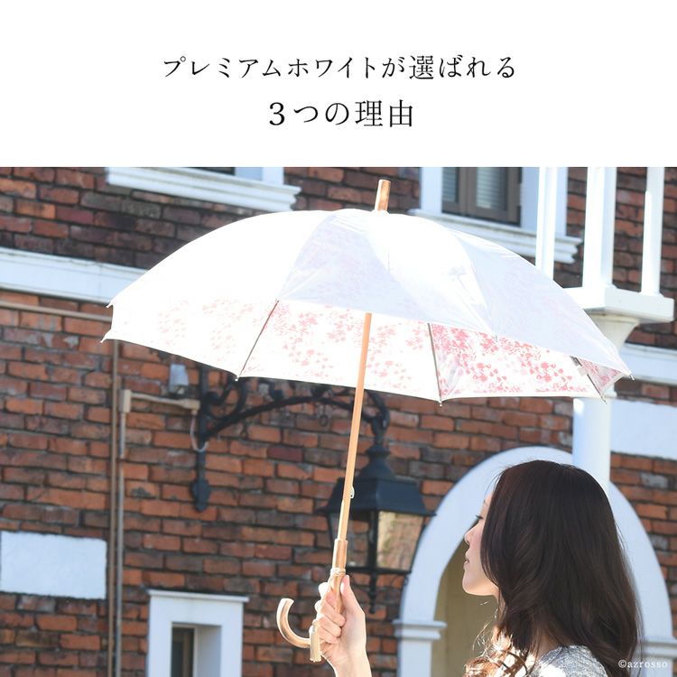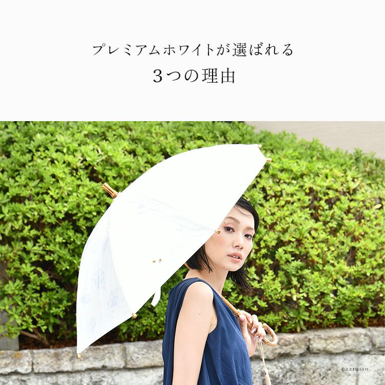白いのにUVカットほぼ100% 晴雨兼用で便利な premium white ユビオン プレミアムホワイト 日本製ブランド 海 ゴルフ スポーツ観戦 旅行 夏は爽やかに紫外線カットを 日傘 シャドーローズ 長傘 ユビオン プレミアムホワイト 高級白木 日本製 日本製 驚きの殺菌力と抗菌力をもつ日傘