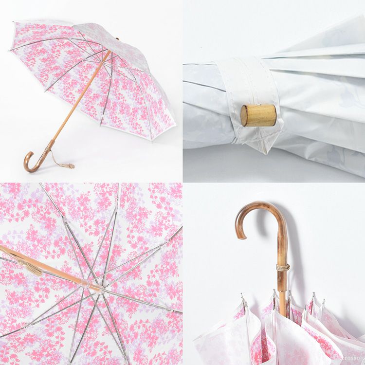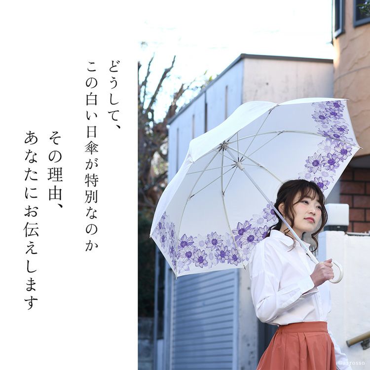 白くてもUVカット率99.8%以上。超軽量で体感気温マイナス約10℃のクールダウン効果。母の日プレゼントにもおすすめの美白日傘 日傘 ディアフラワー 長傘 ユビオン プレミアムホワイト高級白木 日本製 日本製 驚きの殺菌力と抗菌力をもつ日傘