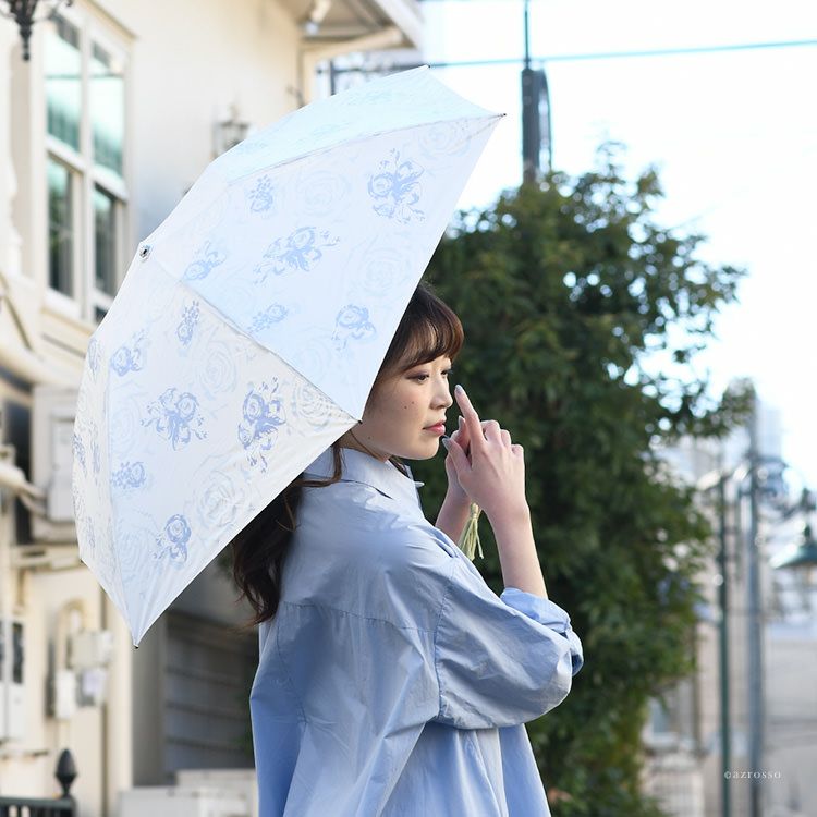 UVカット率99%以上の白い日傘。美しい花柄折り畳み傘「エレガントローズ」。温度カット10℃以上のクールダウン効果のあるUVION Premium white(ユビオン プレミアムホワイト)は旅行やスポーツ観戦のお供にもおすすめ 簡単開閉 折りたたみ日傘 ローズ 花柄 プレミアムホワイト UVION 日本製 白でもUVカット99% 驚きの殺菌力と抗菌力をもつ日傘