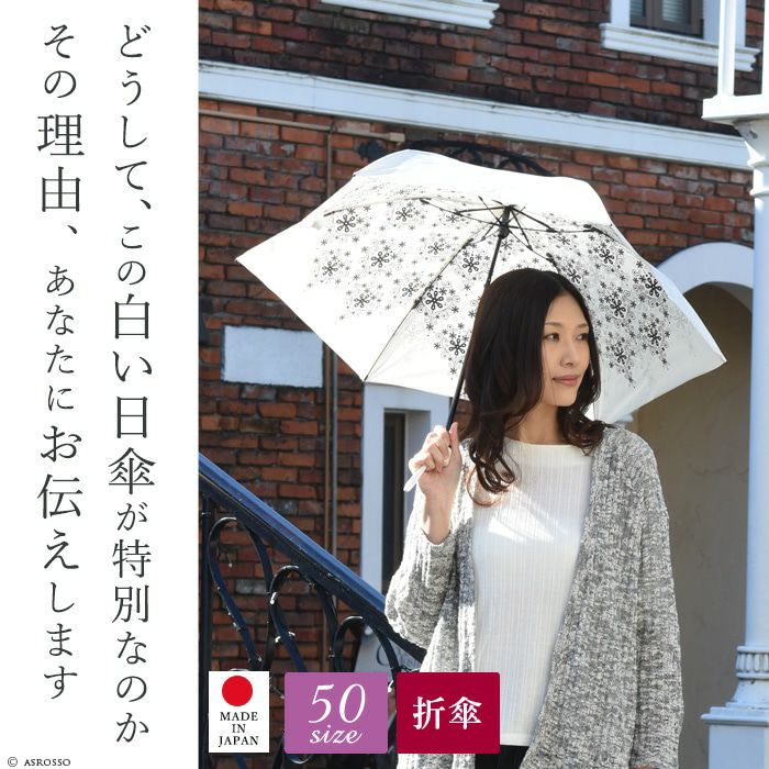 クリスタル柄 日傘 折りたたみ 晴雨兼用 UVION ユビオン プレミアムホワイト 日本製 白でもUVカット99% 驚きの殺菌力と抗菌力をもつ日傘