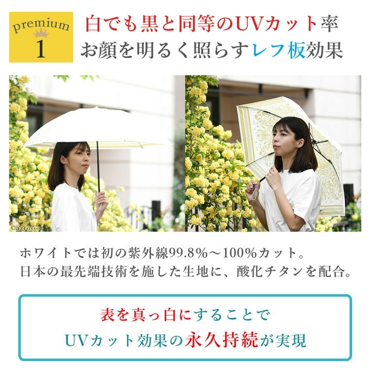 白 日傘 ダマスク柄 折りたたみ傘 晴雨兼用 傘 軽い 軽量 紫外線 UV カット 遮熱 涼しい 黒 ゴールド 黄色 青 ピンク 日本製 レディース プレミアムホワイト