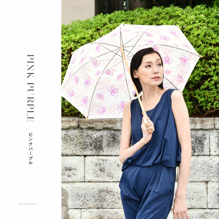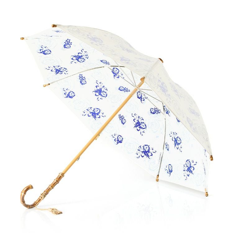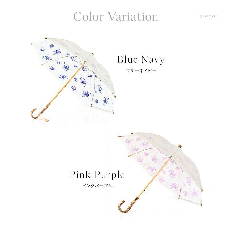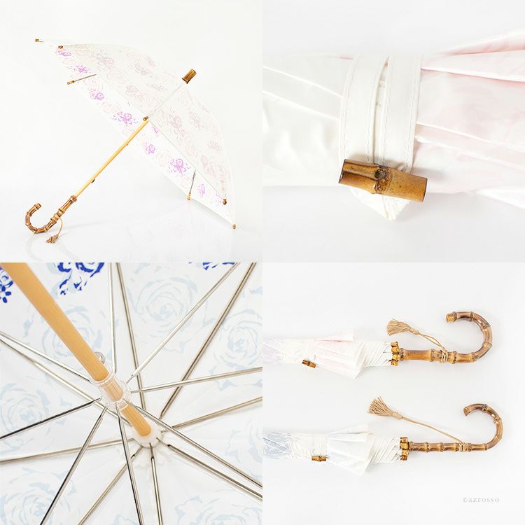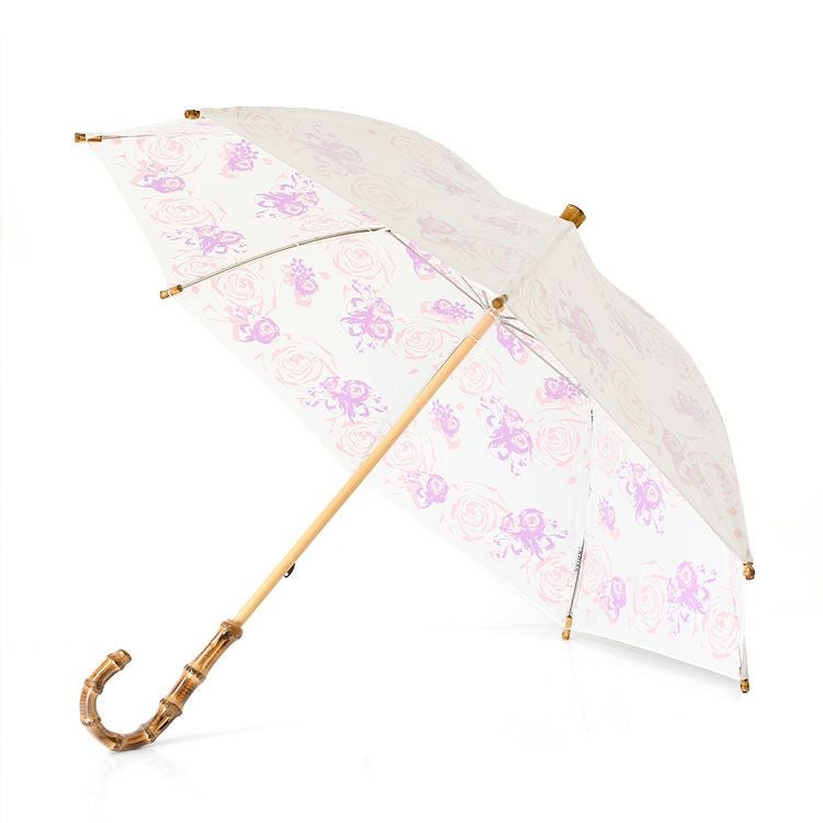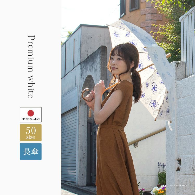 日傘 エレガントローズ 長傘 花柄 高級寒竹 持ち手 タッセル付き プレミアムホワイト UVION 日本製 白でもUVカット99% 驚きの殺菌力と抗菌力をもつ日傘