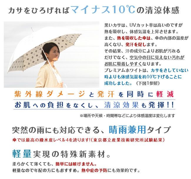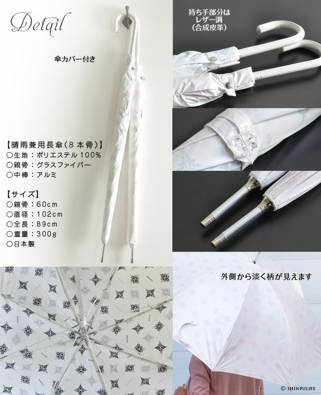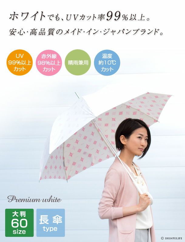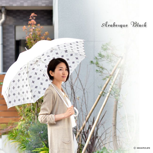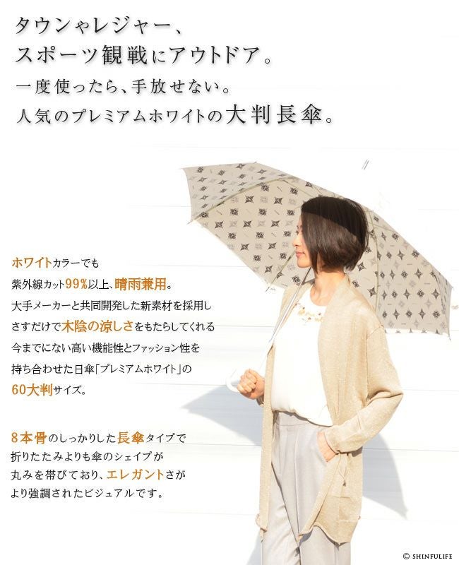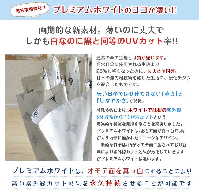 日傘 UVIONプレミアムホワイト 大判 60サイズ 長傘 アラベスクUVカット率ほぼ100% 晴雨兼用 遮熱効果で暑くない 完全遮光や1級遮光と違い瞳に安全 日本製