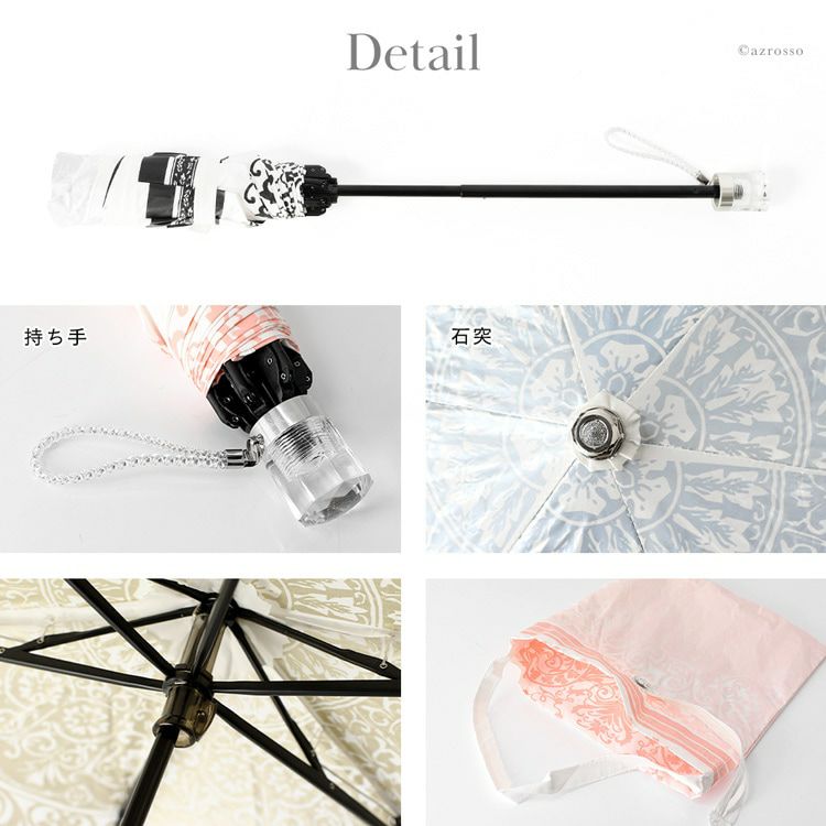 白 日傘 ダマスク柄 折りたたみ傘 晴雨兼用 傘 軽い 軽量 紫外線 UV カット 遮熱 涼しい 黒 ゴールド 黄色 青 ピンク 日本製 レディース プレミアムホワイト