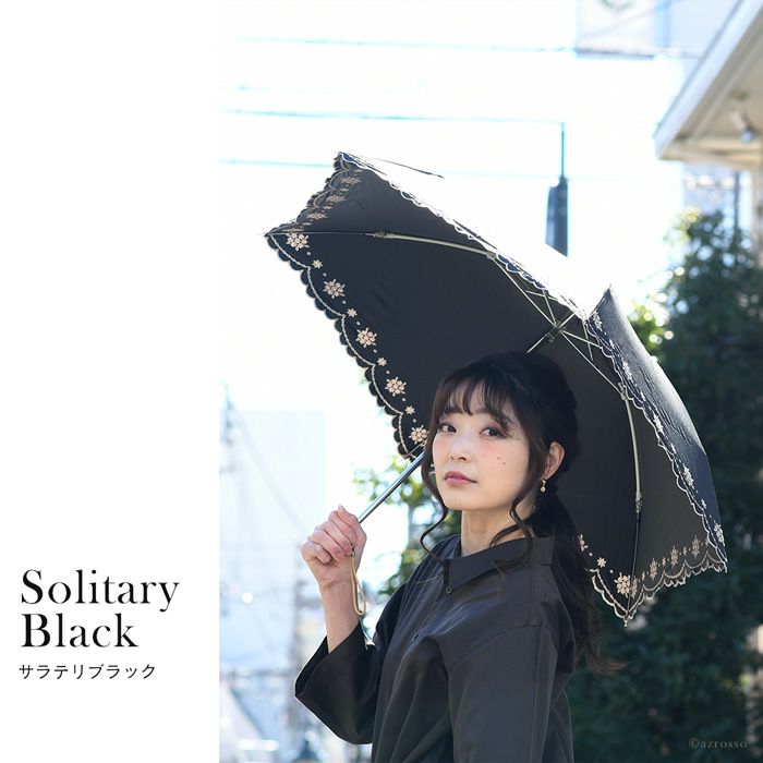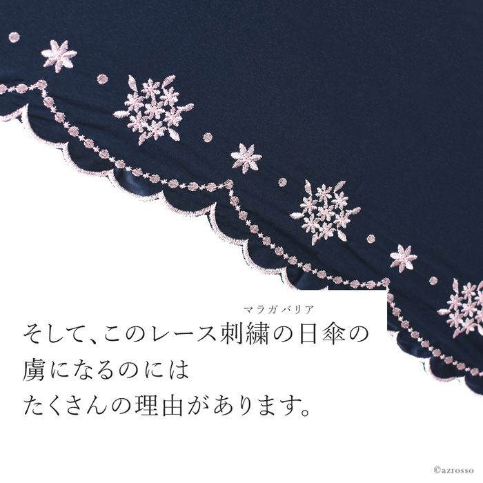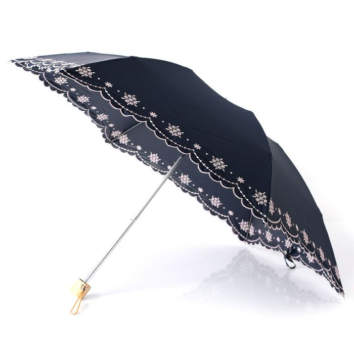 日傘 レース 折りたたみ 刺繍 リトルブーケ 花 柄 フラワー ブラック 黒 ネイビー 紺 ベージュ