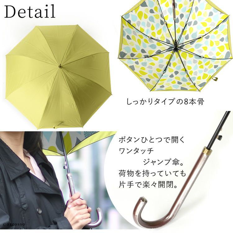 ボタンひとつでワンタッチ開閉のジャンプ傘。UVカット率99%以上で日傘としても使える優れもの。クールでかっこいい大人女性の為の傘ブランド Lluvia rain (ルビアレイン) 二重張り 晴雨兼用傘 長傘 大判 ジャンプ 日傘 ティアドロップ グリーン