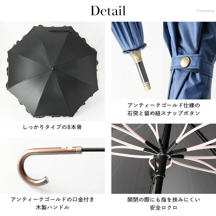 アーチカットとフリルが美しい晴雨兼用日傘 和装 着物 浴衣にも似合う 花柄 裏側ブラックコーティングでUVカット率100% 母の日やお誕生日のプレゼントやギフトにも 晴雨兼用 日傘 フリル 長傘 遮光 遮熱 お洒落に紫外線対策 さくら骨 マラガバリア