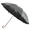 ガーデンモチーフの刺繍が美しい晴雨兼用の長傘タイプ日傘。コンパクトな深張りドーム型。UVカット&遮光100%の完全遮光仕様で紫外線から肌を守ります。遮熱効果を備え涼しさも。軽量設計で持ち歩きも快適 刺繍入り日傘 UVカット 長傘 遮光100 完全遮光 遮熱 涼しい ブラックコーティング UVカット100 軽量 晴雨兼用 内側黒