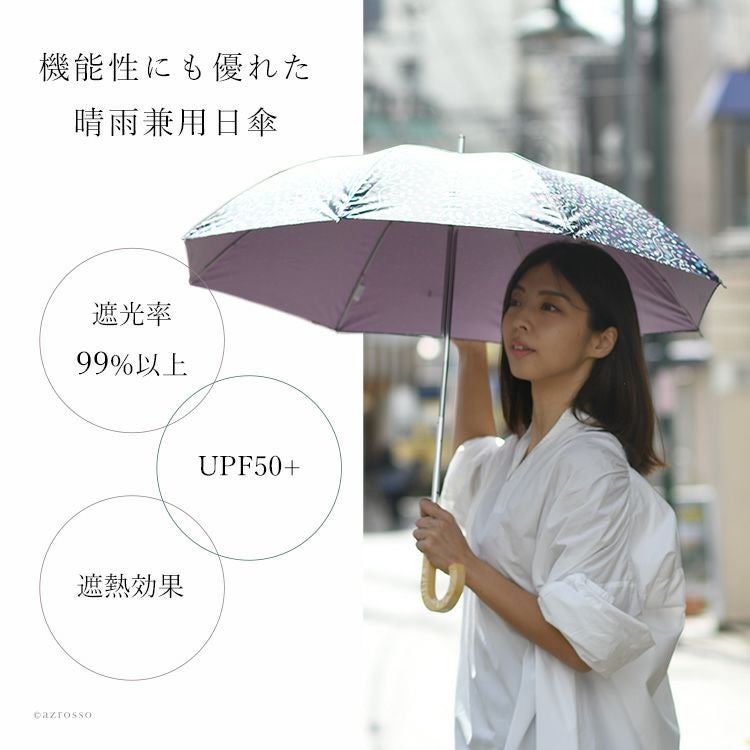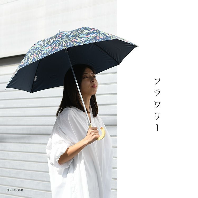 優雅な花模様で彩る上品な晴雨兼用傘。遮光100・UVカット100・遮熱効果ありで凉しい長傘タイプの大判日傘。軽量8本骨のワンタッチジャンプ傘はプレゼントにもおすすめ 晴雨兼用 長傘 完全遮光 日傘 ブラックコーティング UVカット 遮熱 60cm グラスファイバー 8本骨 花柄 ワンタッチジャンプ傘 レディース