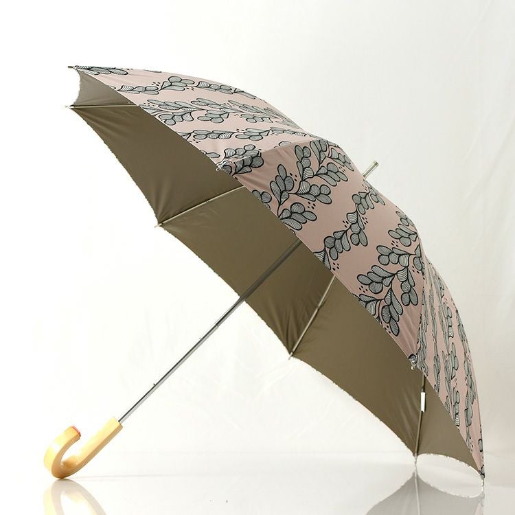 柔らかな色合いのリーフ柄がおしゃれな晴雨兼用傘。遮光100・UVカット100・遮熱効果ありで凉しい大判日傘。クールな大人女性の為の雨傘ブランド Lluvia rain (ルビアレイン) 完全遮光 日傘 晴雨兼用 長傘 UVカット ブラックコーティング 遮熱 涼しい レディース 大判 58cm ワンタッチジャンプ傘 グローブ